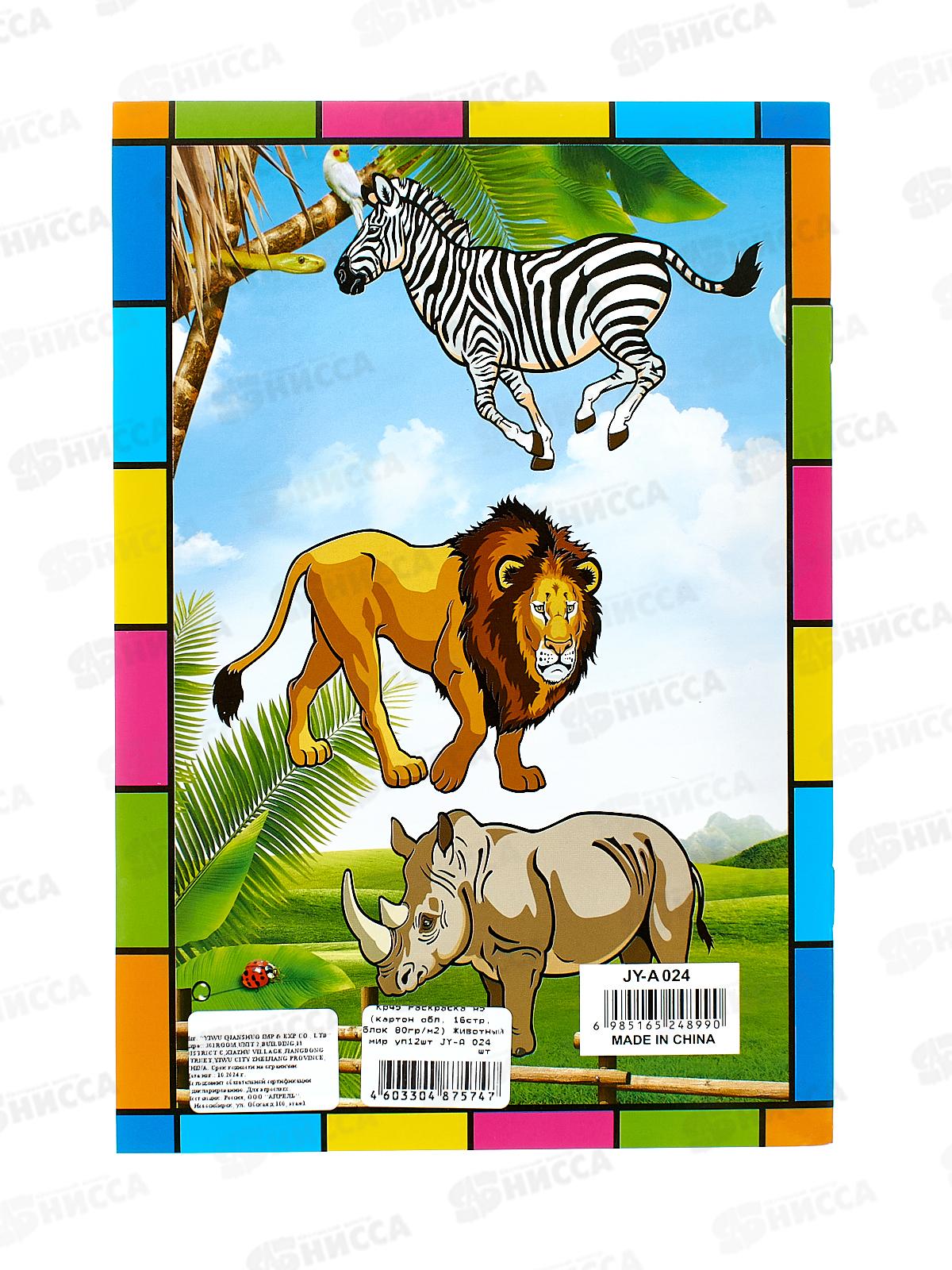 Раскраска А5 (картон обл, 16стр, блок 80гр/м2) Животный мир JY-A 024
