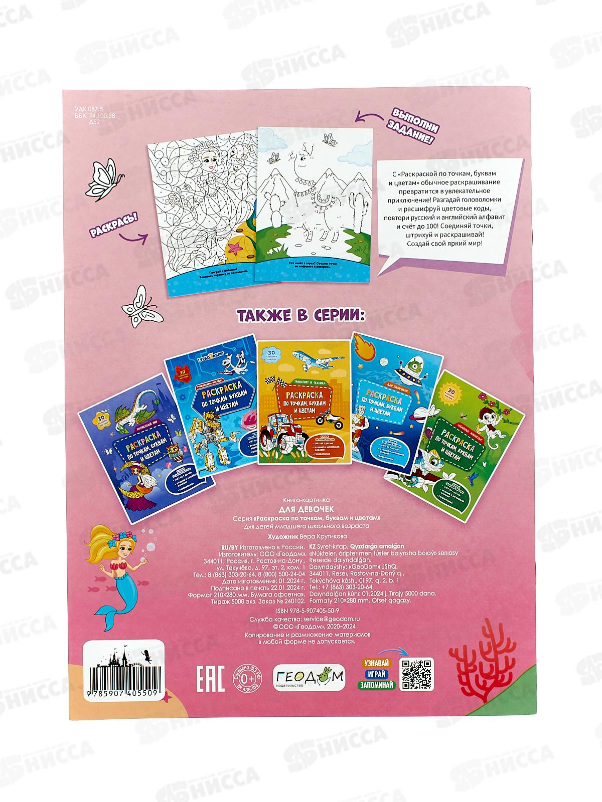 Раскраска ГД по точкам,буквам и цветам. Для девочек, 20стр., 05509