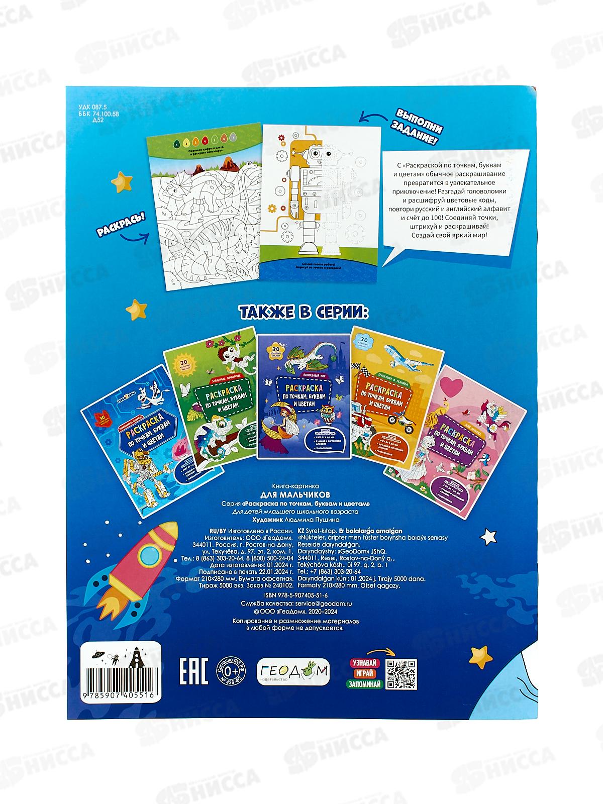 Раскраска ГД по точкам,буквам и цветам. Для мальчиков, 20стр., 05516