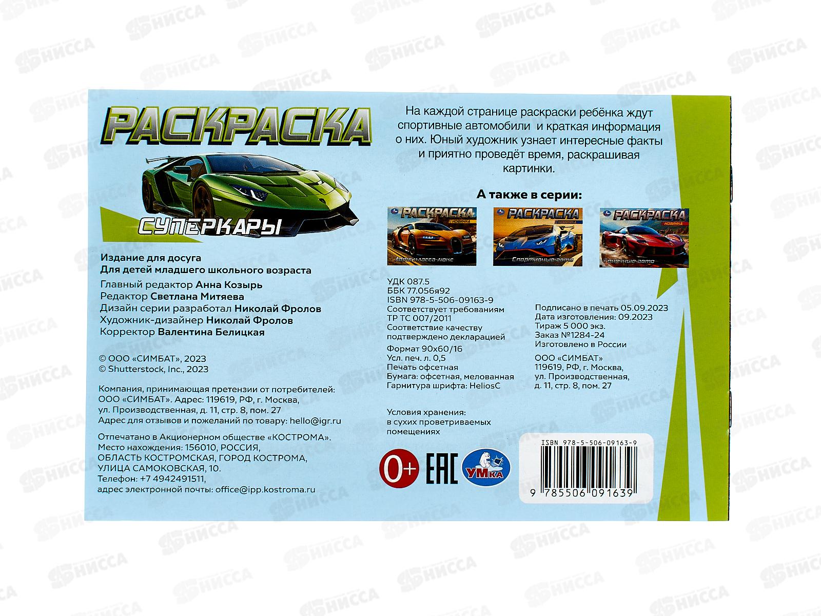 Раскраска "УМКА" 09163-9, Суперкары, горизонтальная 210х140 ,8стр.*100