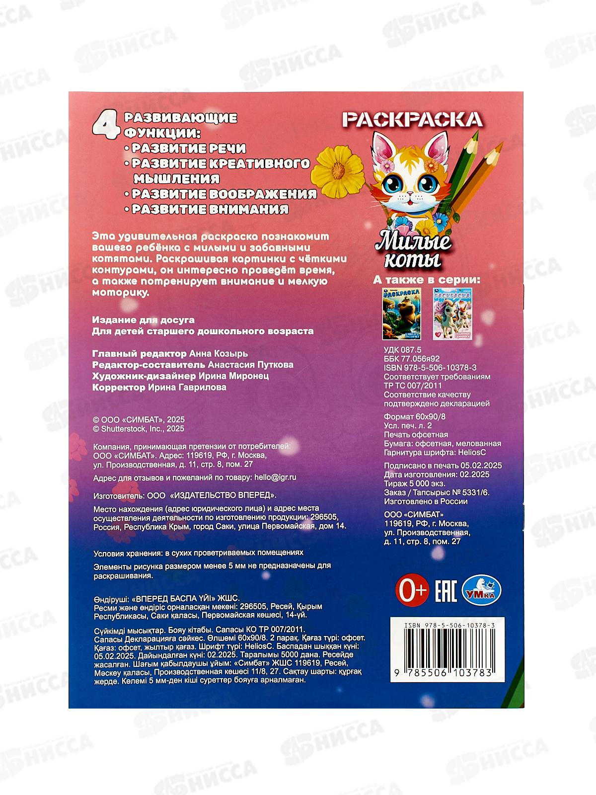 Раскраска «Милые коты» ТМ «УМка» — отличный подарок для юных художников: