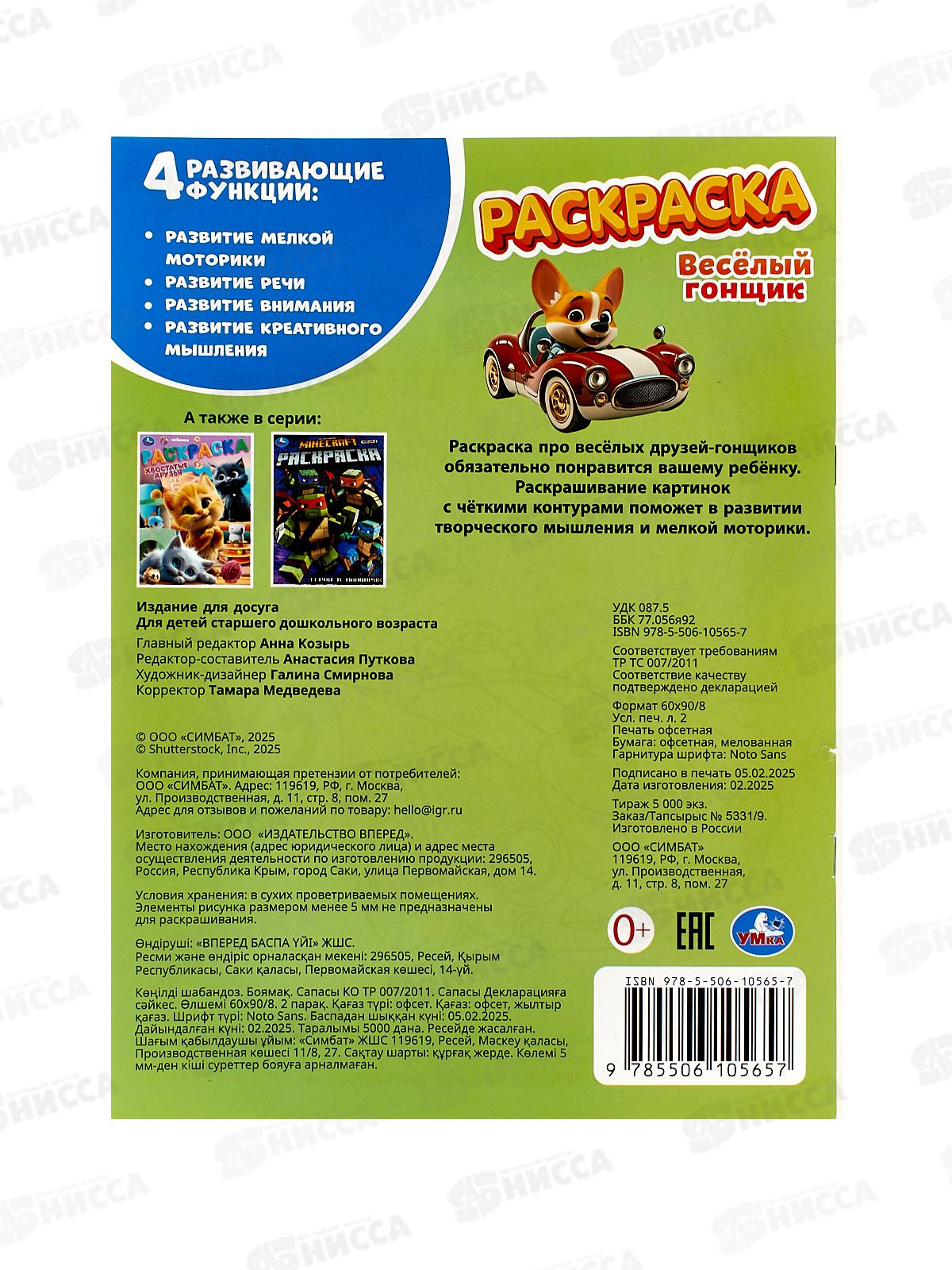 Раскраска «Весёлый гонщик» ТМ «УМка» — отличный подарок для юных художников: