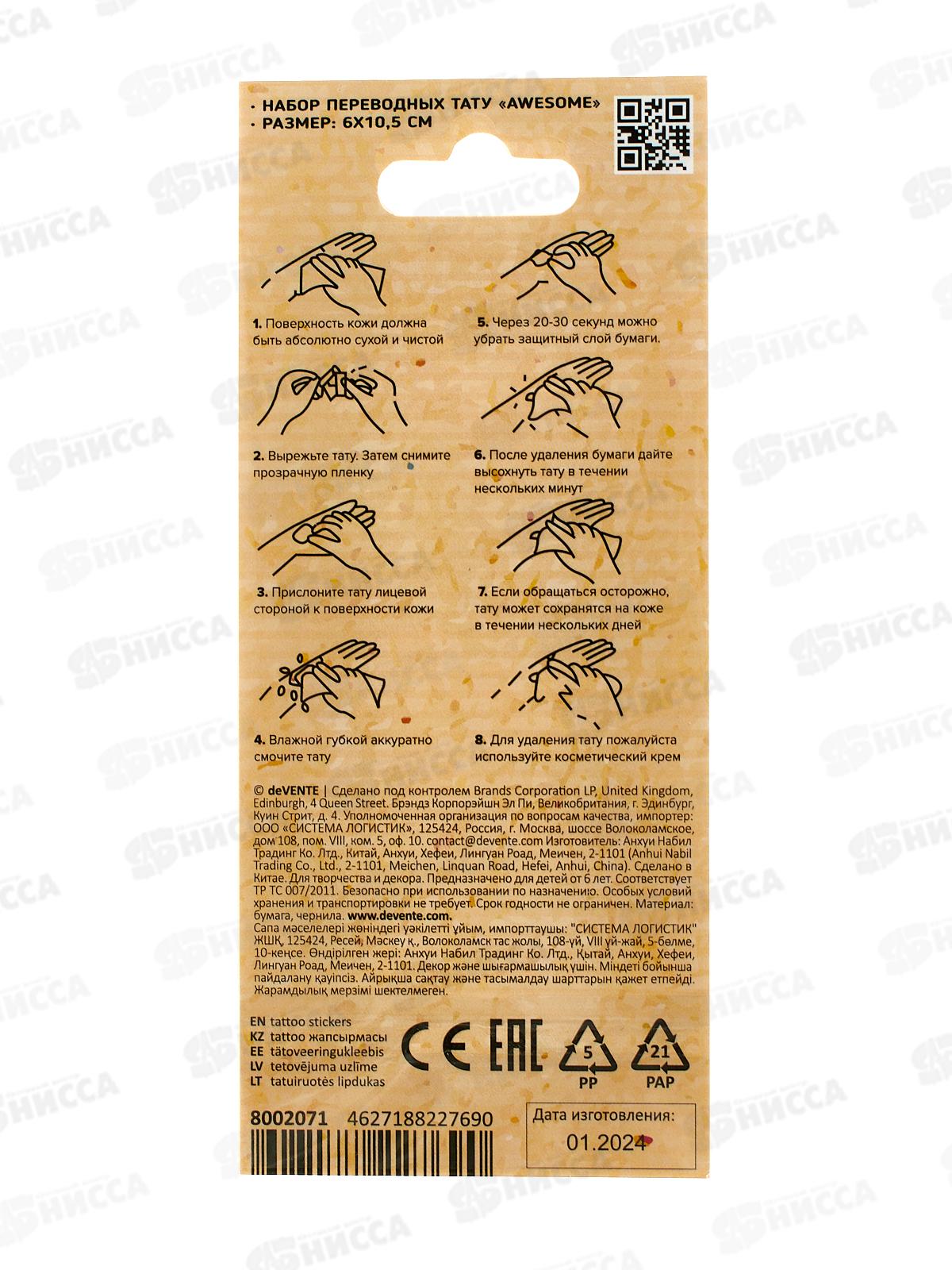 Татуировка-наклейка deVente Awesome (6х10.5см) 8002071 *12