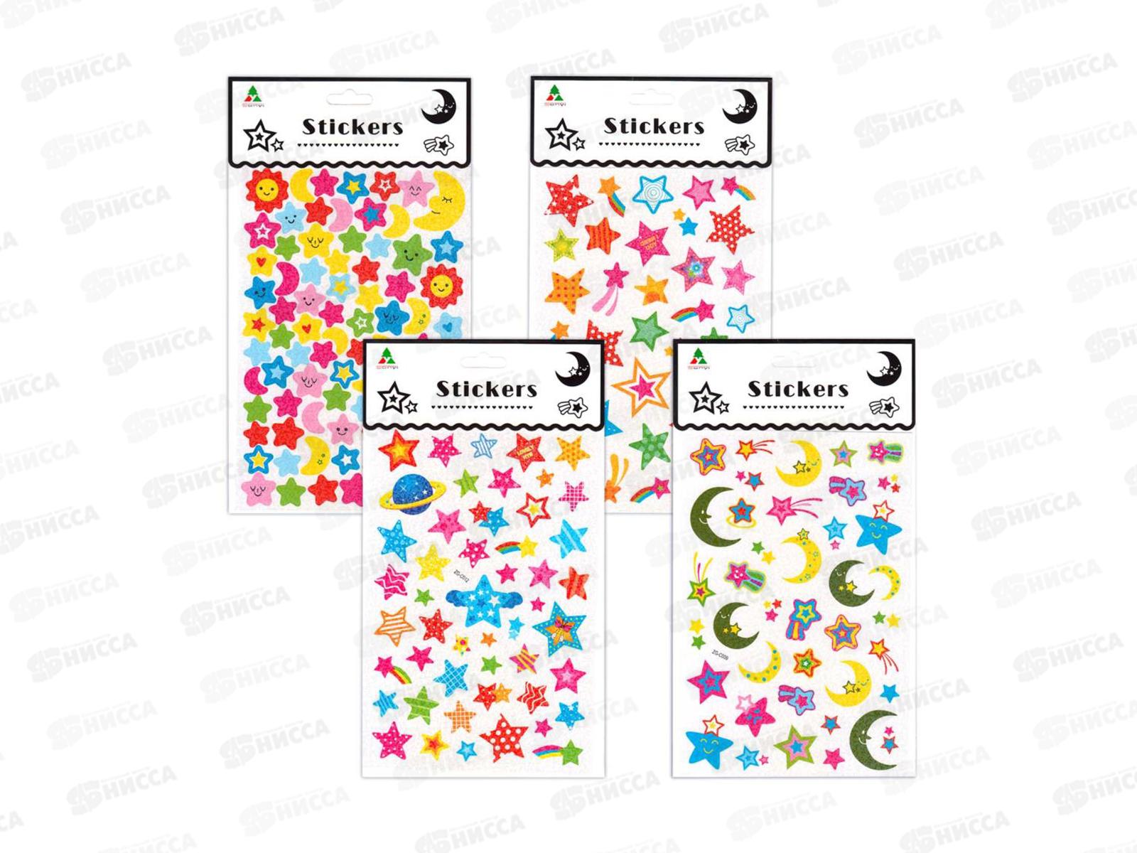 Код:210525; Наклейка ЛиС А5 Смайлы-Звёзды, в ассортименте, светящиеся НБС *20