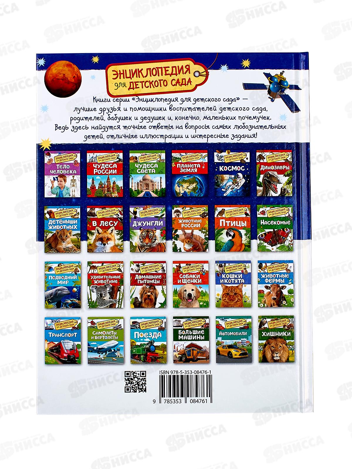 Эта книга познакомит ребёнка с миром космоса. Он узнает, что такое звезды и галактики, кометы и астероиды, какие планеты входят в Солнечную систему, как люди мечтали покорить космос и осуществили свою мечту. Серия «Энциклопедия для детского сада» разработана специально для детей дошкольного возраста. Она интересна и полезна как для занятий в детском саду, так и для чтения дома. Эти книги с красочными иллюстрациями написаны простым и понятным языом. А проверить то, как запомнилось прочитанное, можно с помощью интересных заданий по каждой теме.