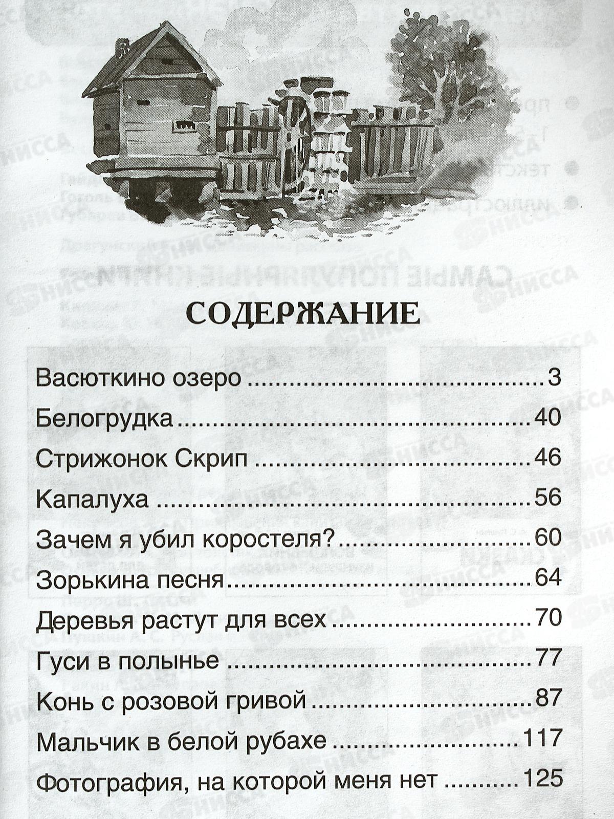 В сборник вошли рассказы В. П. Астафьева «Васюткино озеро», «Белогрудка», «Стрижонок Скрип», «Зорькина песня», «Гуси в полынье», «Конь с розовой гривой», «Фотография, на которой меня нет» и другие. Читателю предстоит погрузиться в полную трудностей повседневную жизнь послевоенной сибирской деревни, увидеть ее глазами ребенка главного героя этих рассказов.