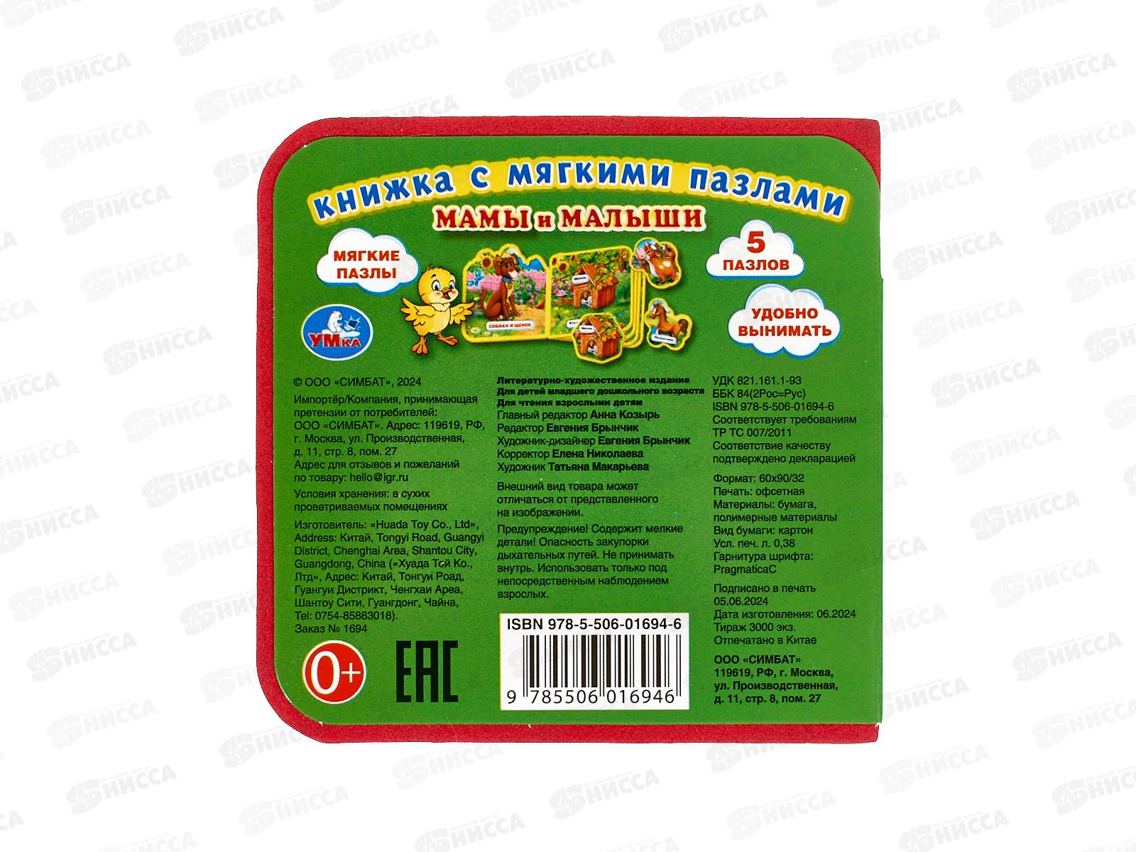 Книга 01694-6 Умка: Мамы и малыши (с 5 пазлами EVA)