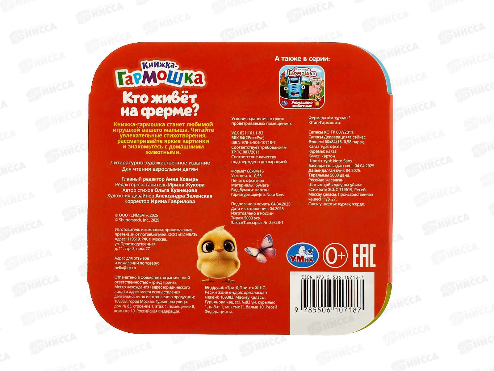Книга 10718-7 Умка, Кто живёт на ферме?, кн.-гармошка, 135х135мм