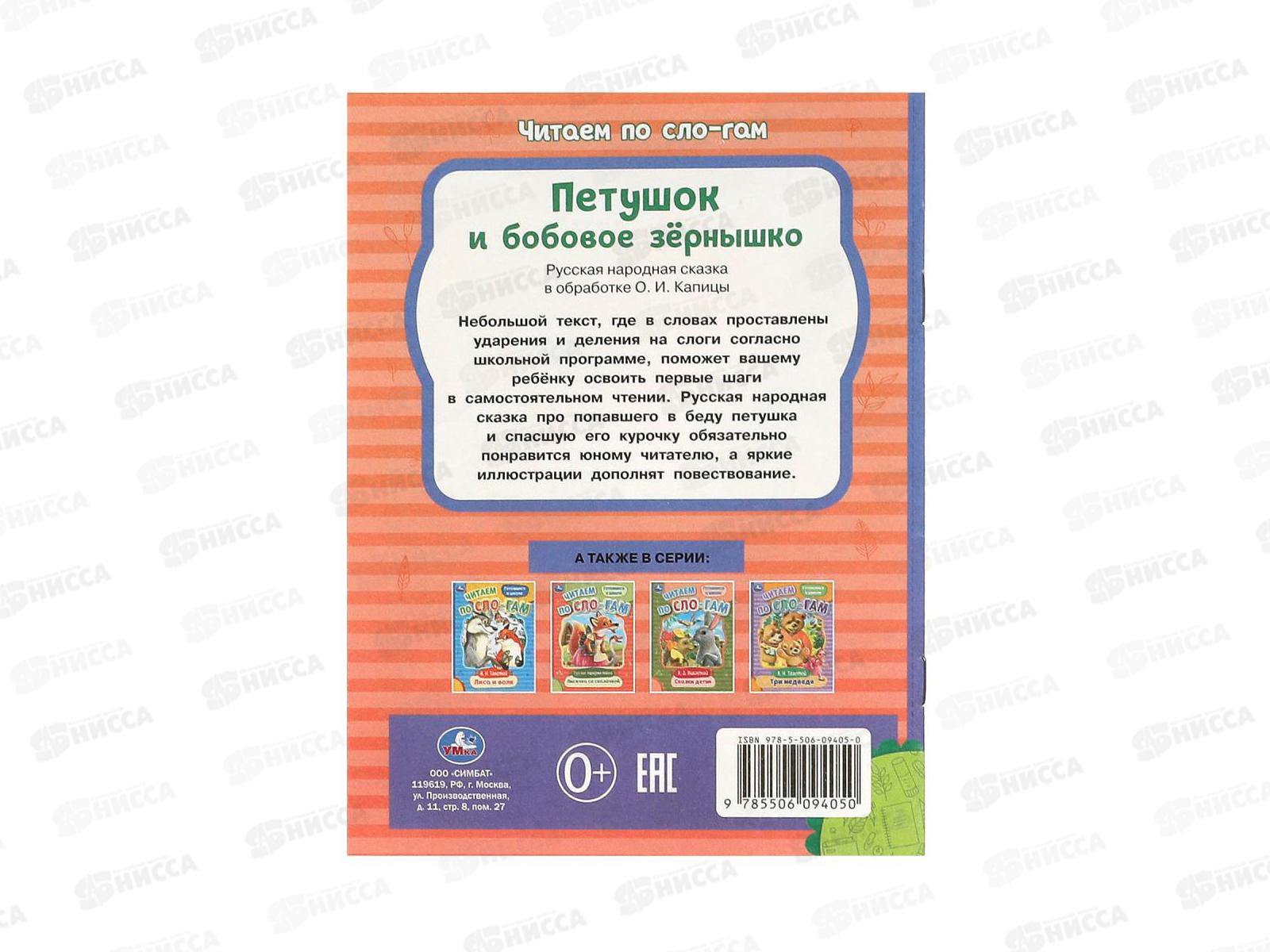Книга 09405-0 Умка: Петушок и бобовое зёрнышко, по слогам, 16стр.*50