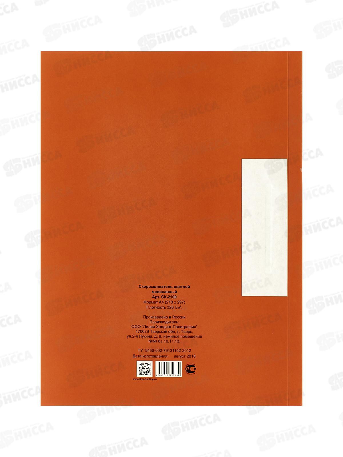 Скоросшиватель картонный цветной ЛХ кирпичный, мелованный (СК-2100) *100