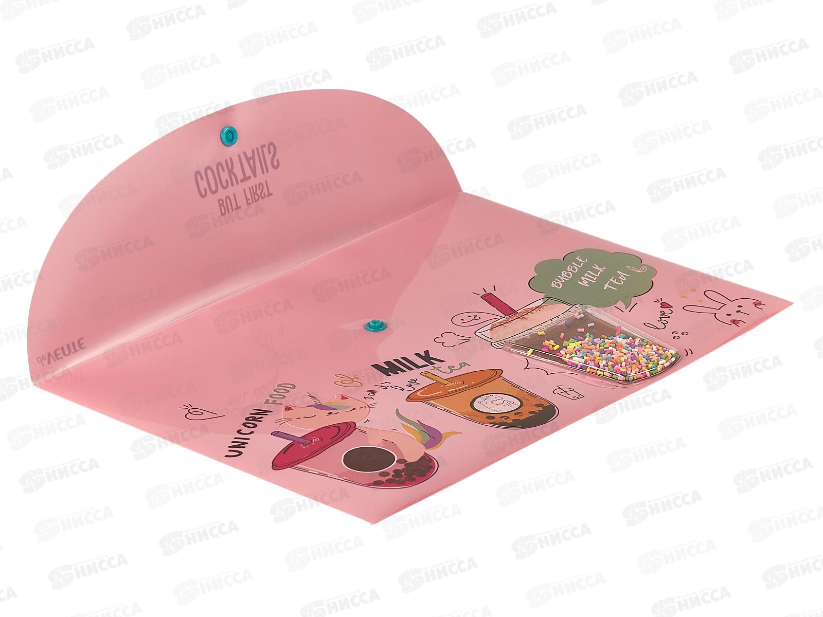 Папка-конверт пластиковая на кнопке deVENTE Unicorn Cocktail розовая 3071105