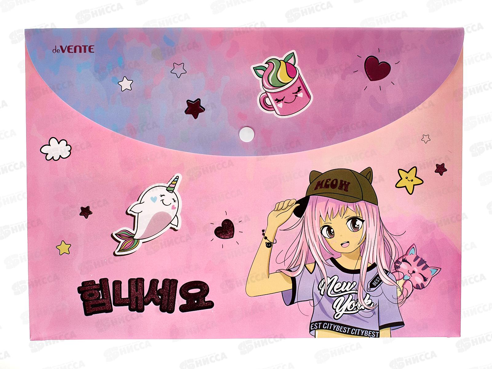 Папка-конверт пластиковая на кнопке deVENTE 335*235 Manga Girl А4 300мк 3079311