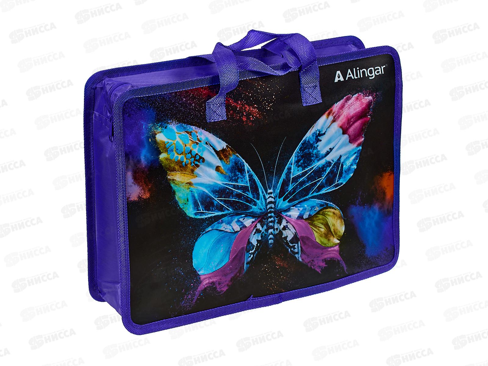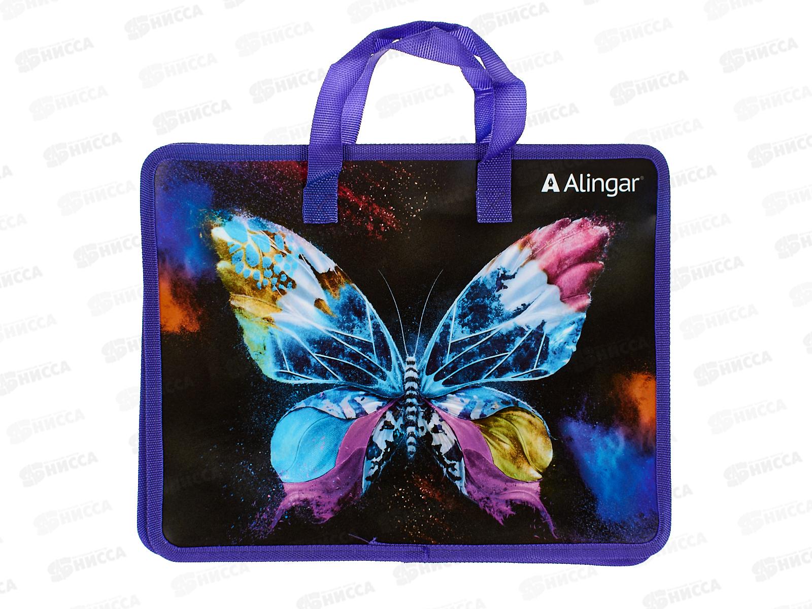 Папка д/тетр. Alingar A4 Неоновая бабочка,1 отд,молн с ручк AL10456