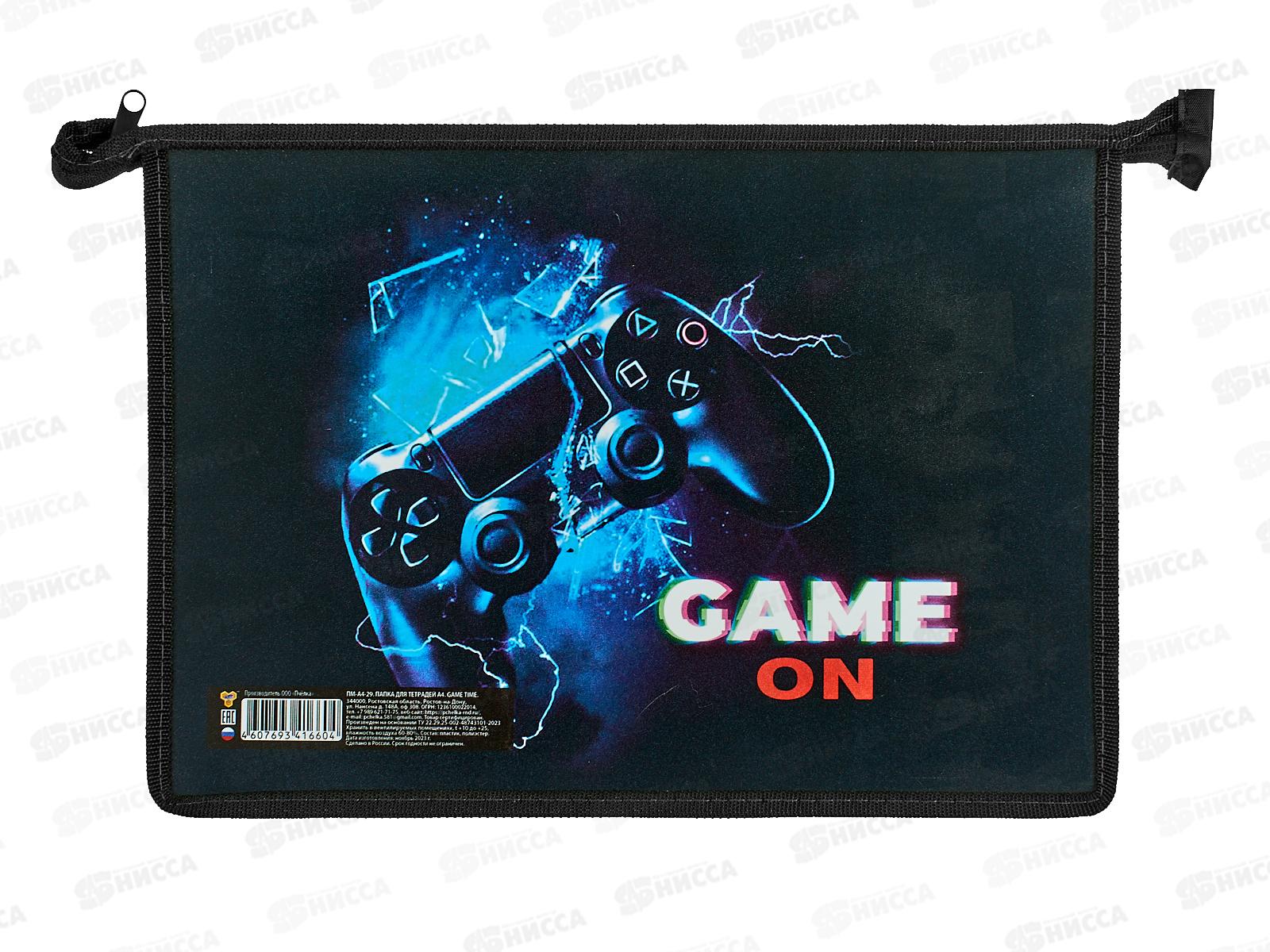 Папка д/тетр. ПЧЕЛКА А4 молн., Game time 2024, ПМ-А4-029 *50