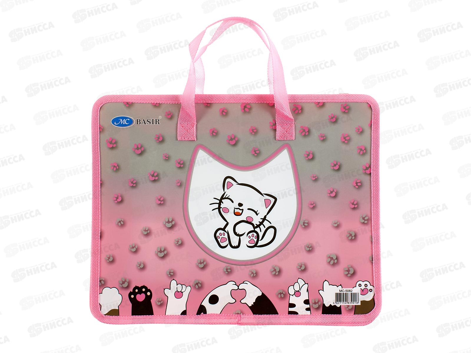 Папка пл. Basir Лапки, А4,молния, ручки МС-5082-5 *12