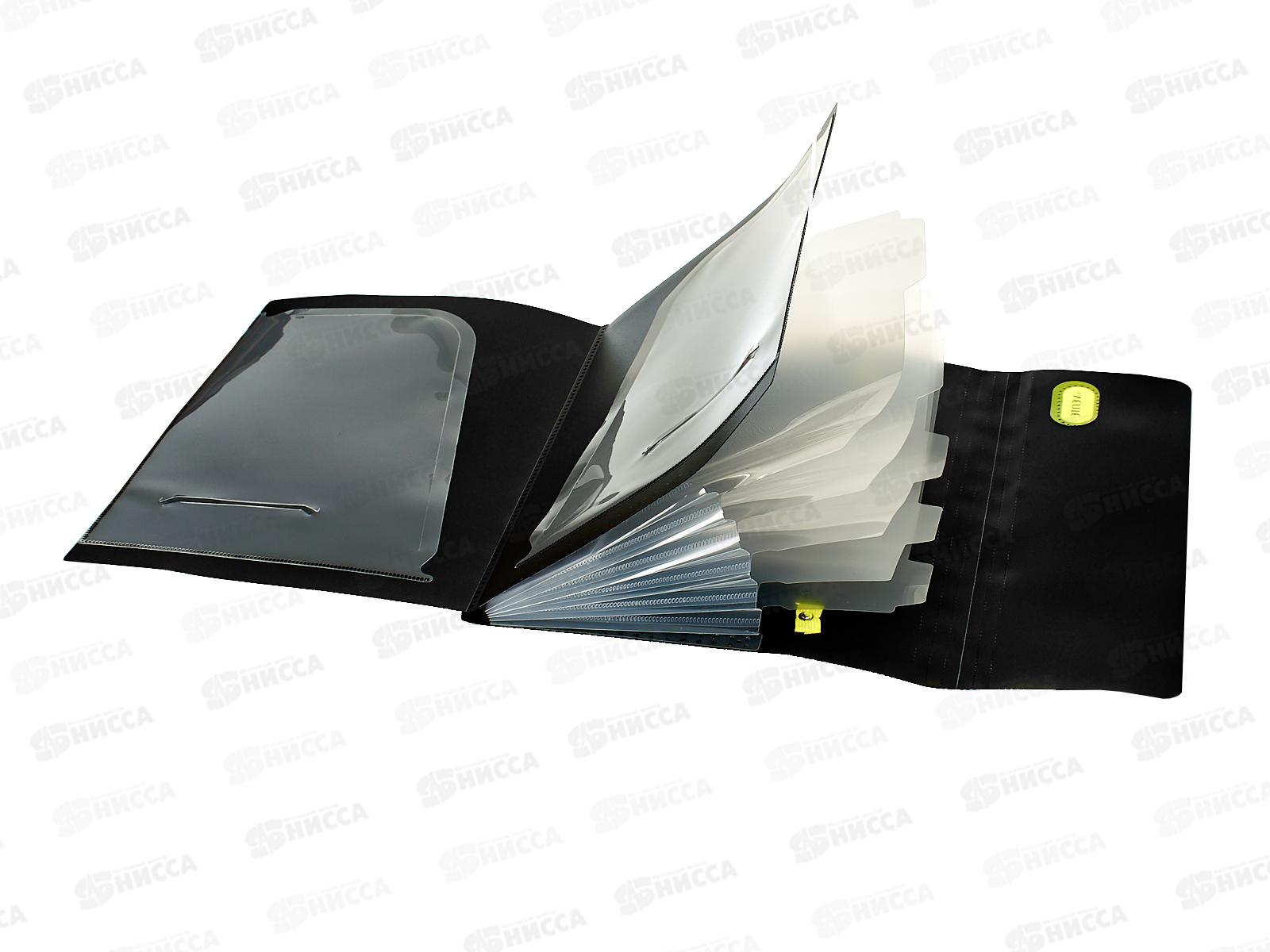 Папка с клап. deVente MonoChrome 6отд. 160мкм, черная с желтым 3078916