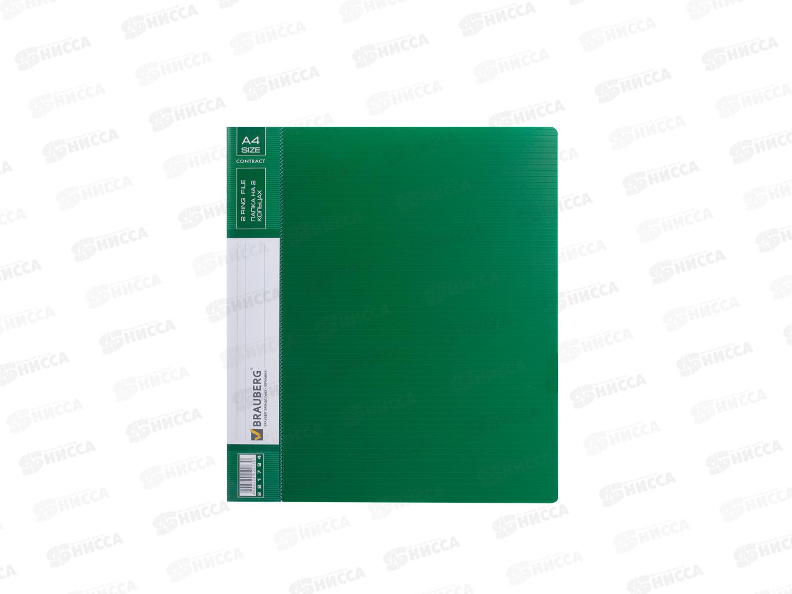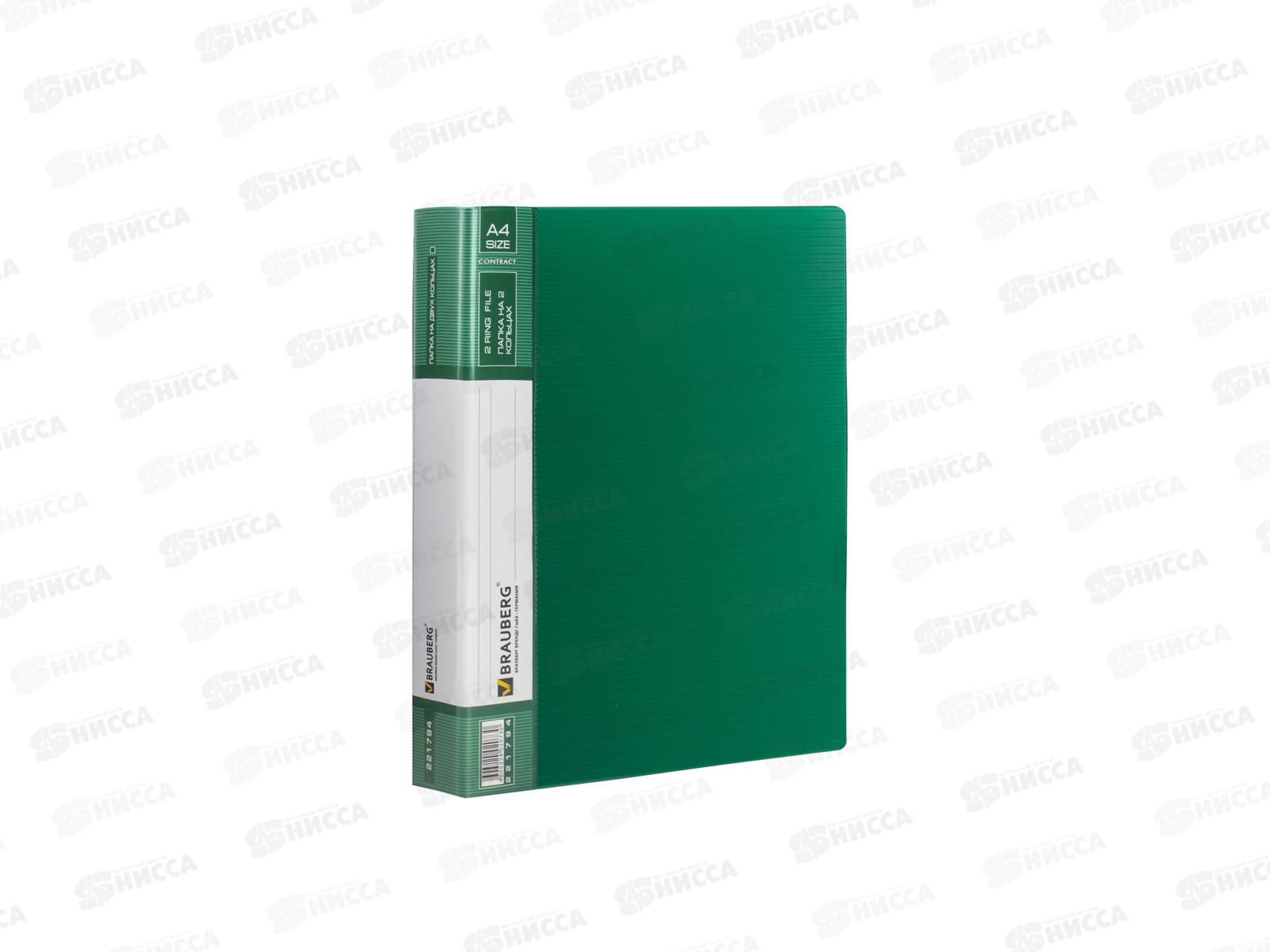 Папка на 2-х кольцах 35мм А4 BRAU Contract, до 180 листов. зеленая, 221794 *20