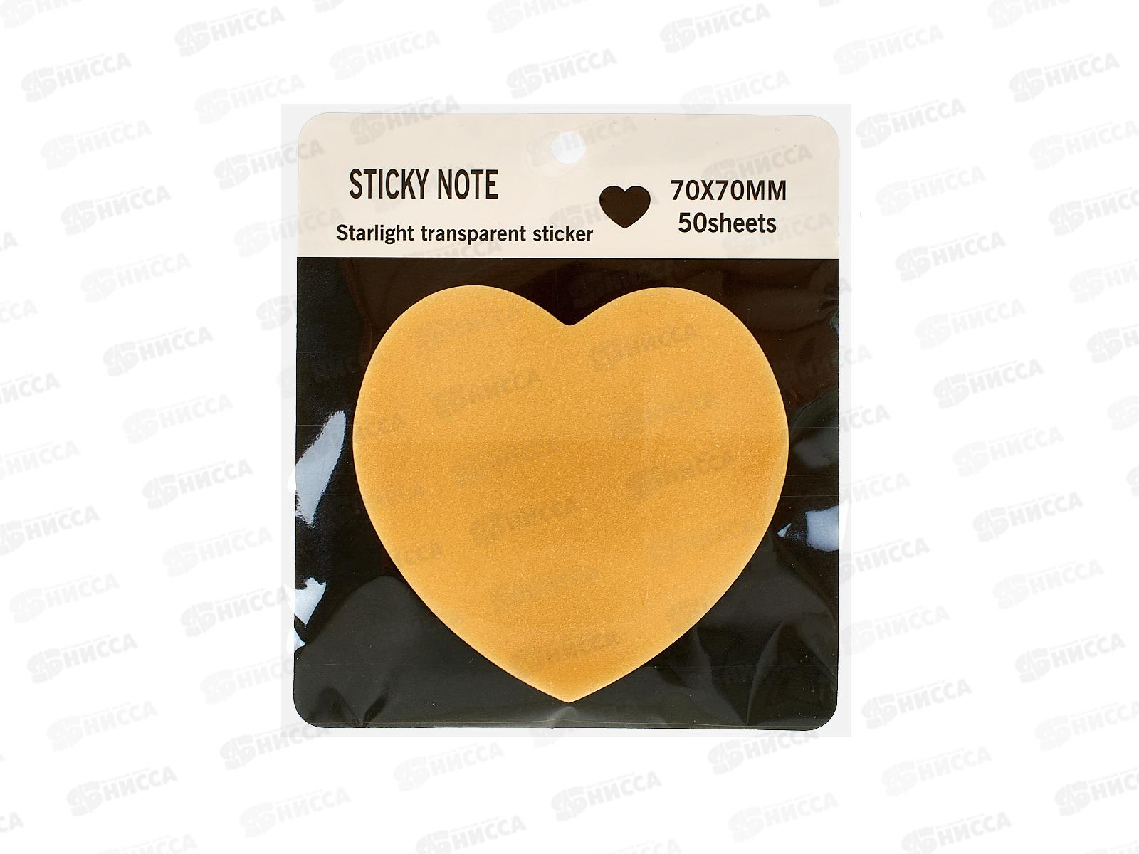 Стикеры для заметок пластик перламутр 70*70мм 50л Сердце NO:8889