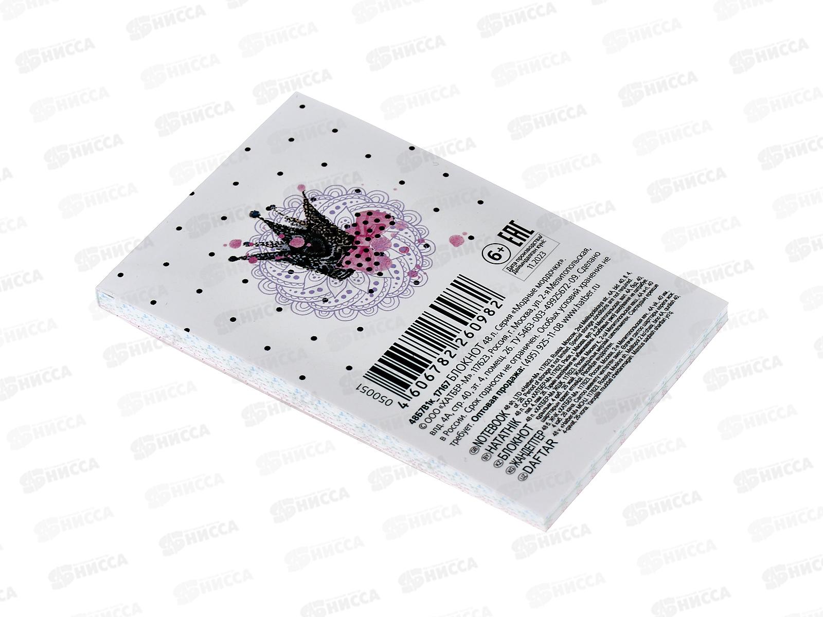 Блокнот 48листов Hatber А7 Модные мордочки, клей *100