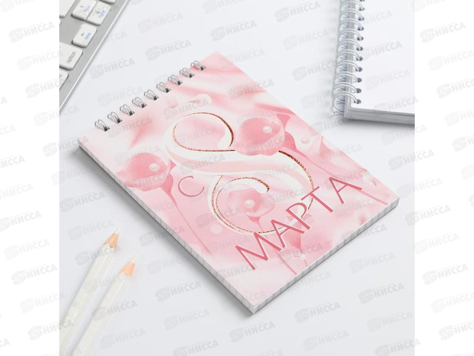 Блокнот 40л "С 8 марта розовый" на греб., А6, 5284801
