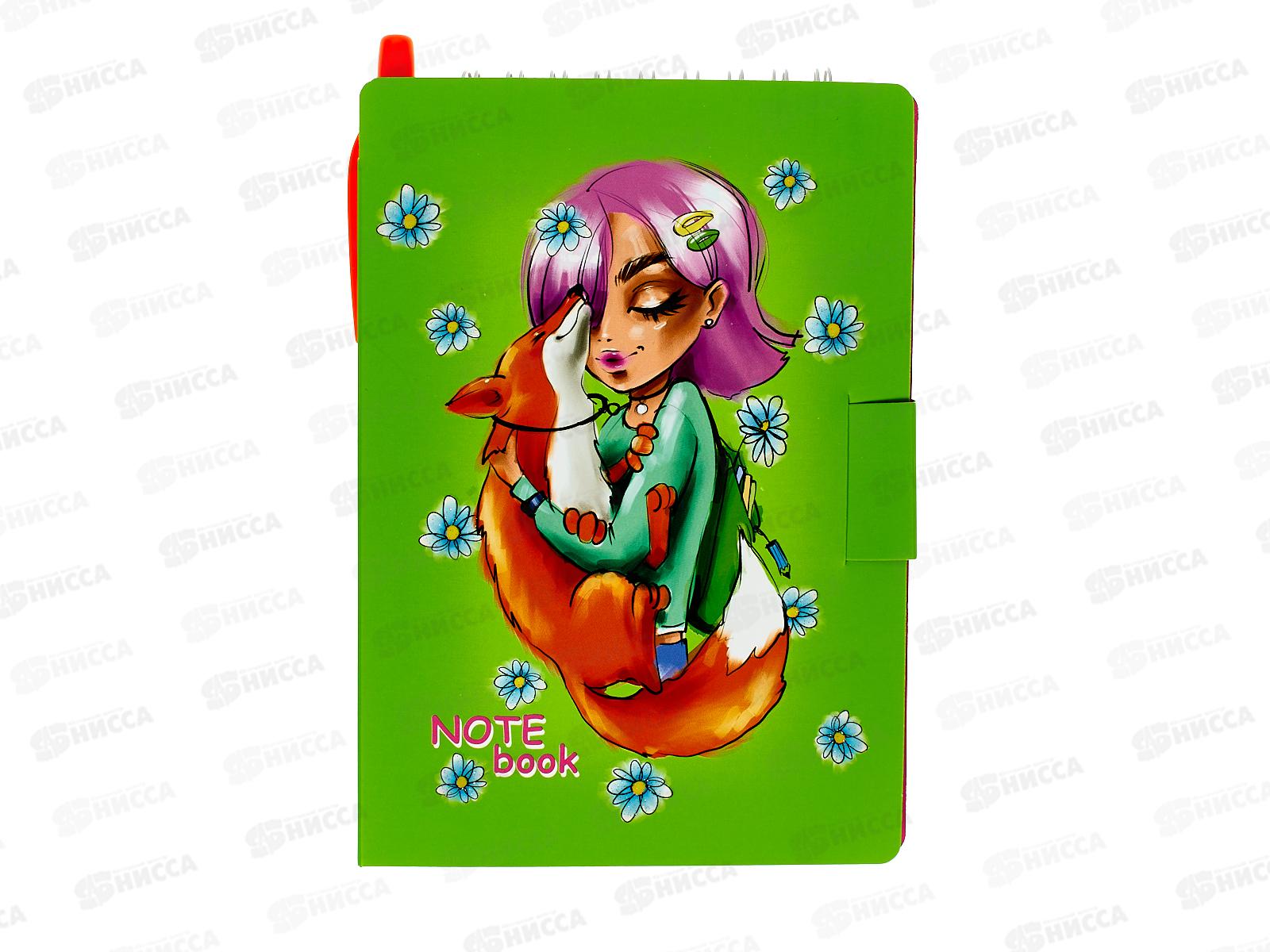 Блокнот с ручкой Lamark Девочка с лисой 105*150мм,гребень, 0128 *40