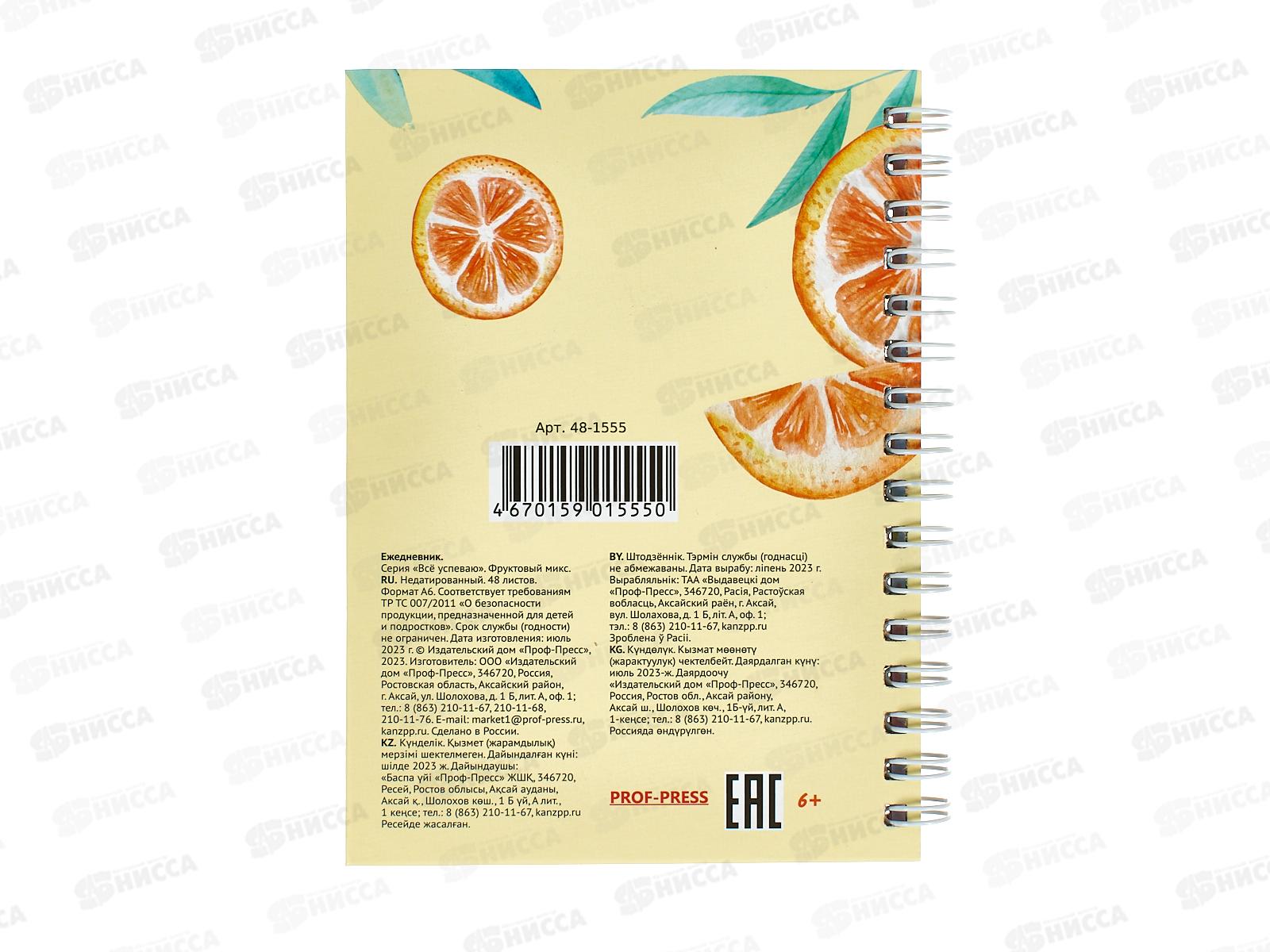 Ежедневник ПП А6 48л Фруктовый микс, недатир., 48-1555