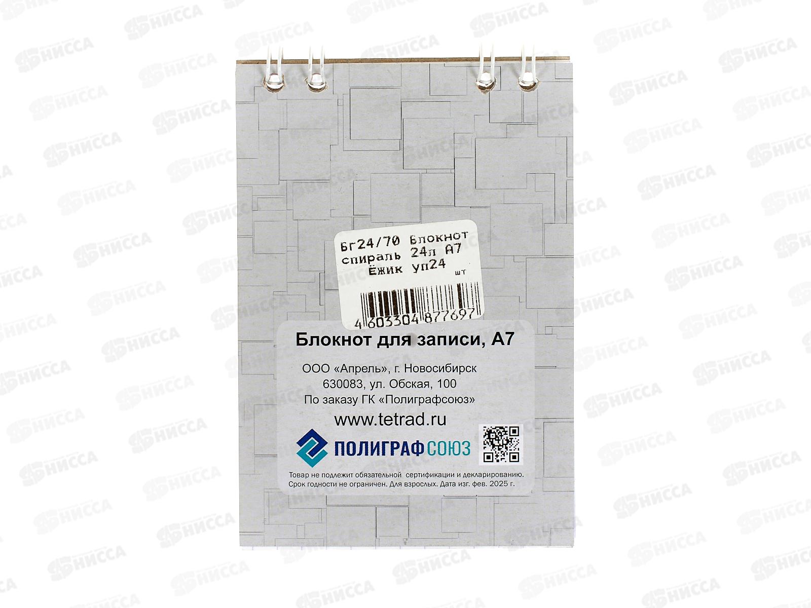 Блокнот 24л ПГС Ежик, 68*98, А7, глит., греб. *24