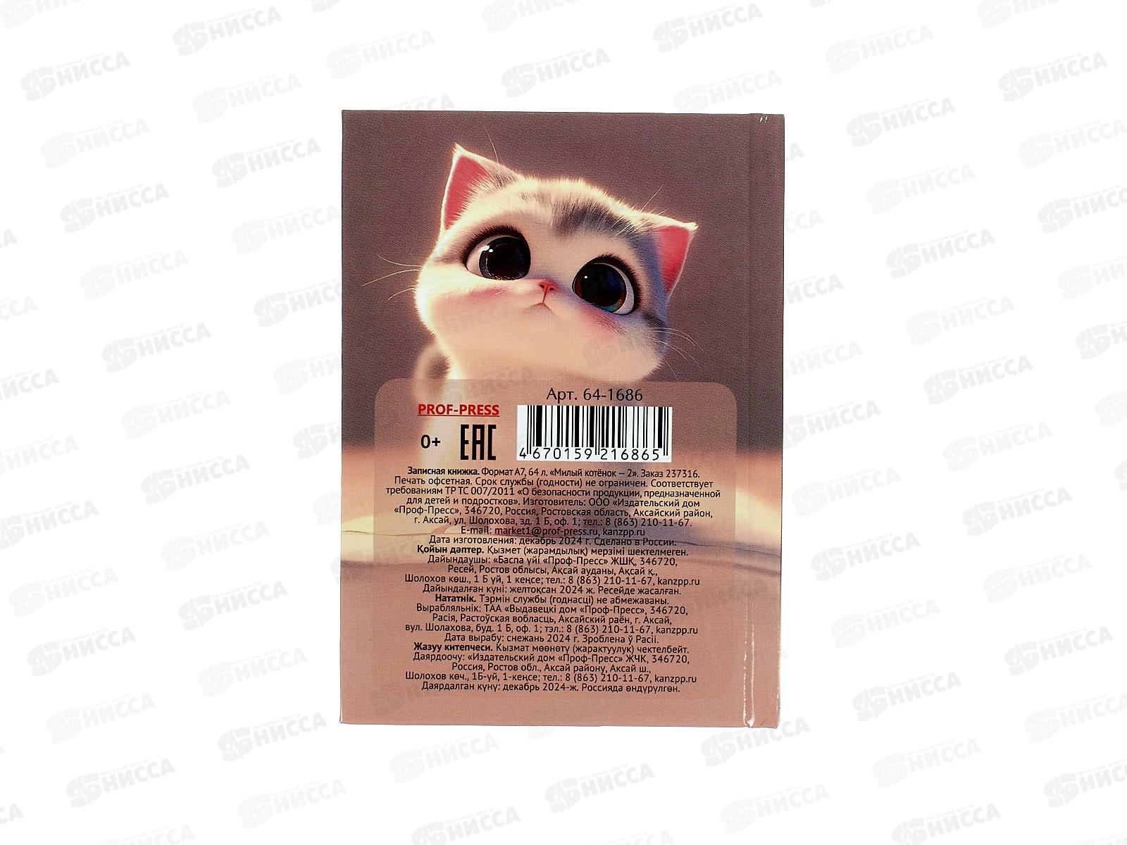 Записная книжка ПП А7 64л Милый котёнок - 2, 64-1686