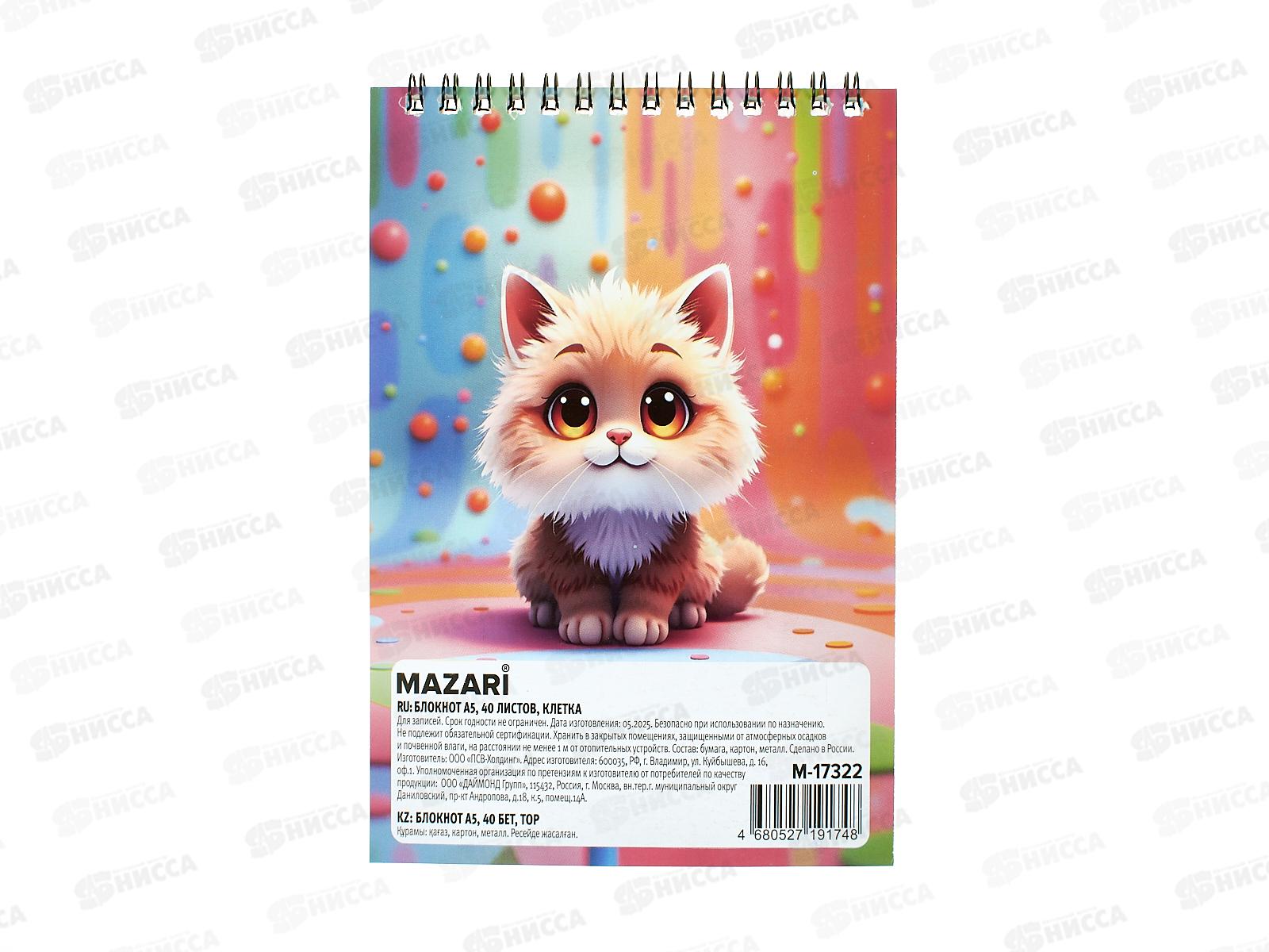 Блокнот 40л MAZARI А5 3 диз. карт.обл.греб, M-17322 *30