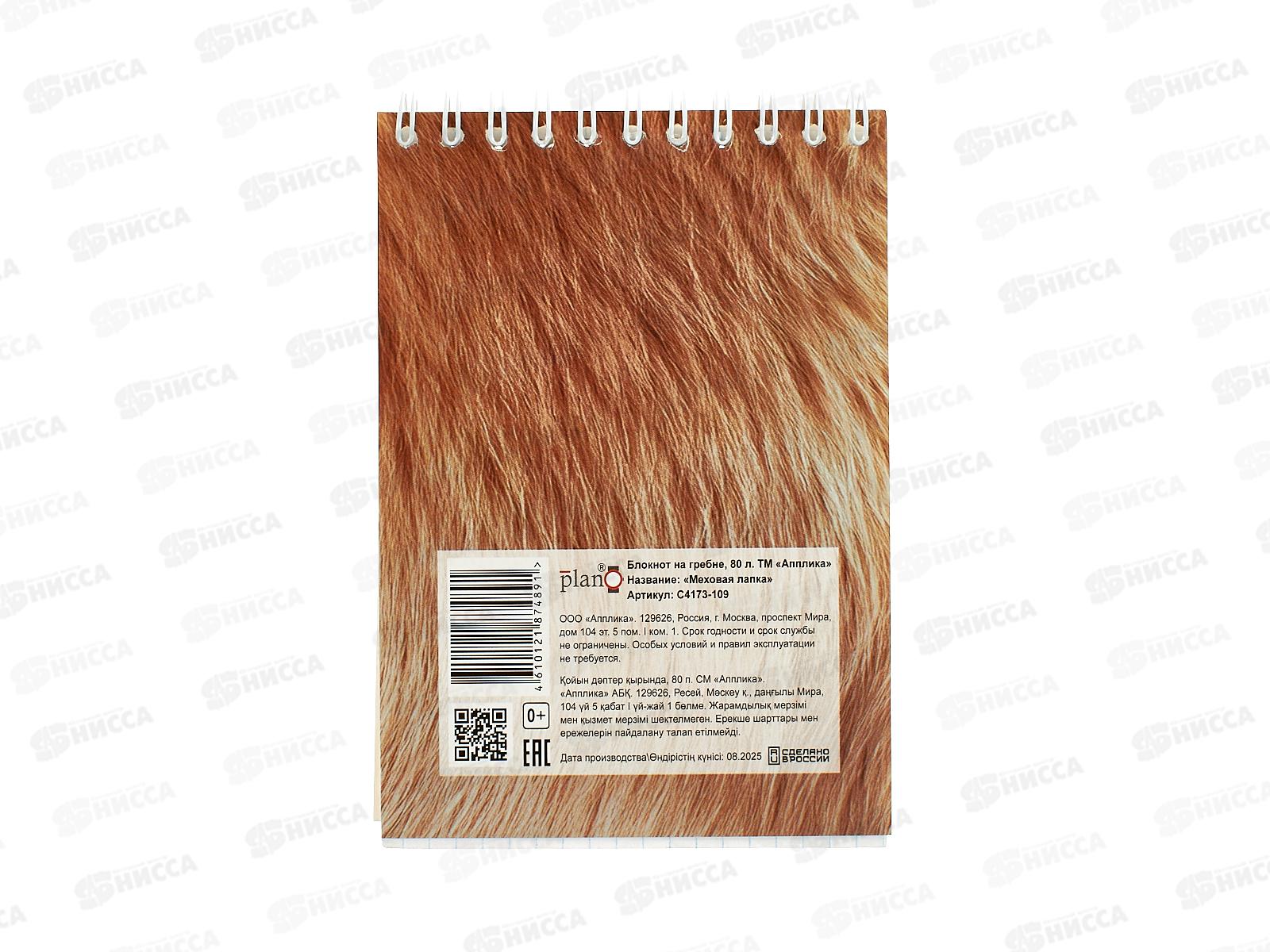 Блокнот 80л А6 Апплика, на греб., Меховая лапка, С4173-109 *80