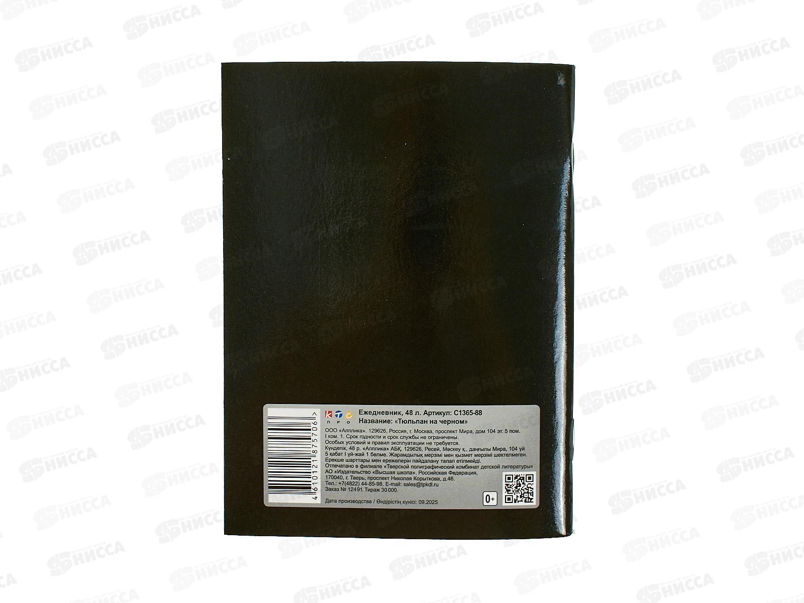 Ежедневник Апплика А6,48л ,Тюльпан на черный ,1365-88*32