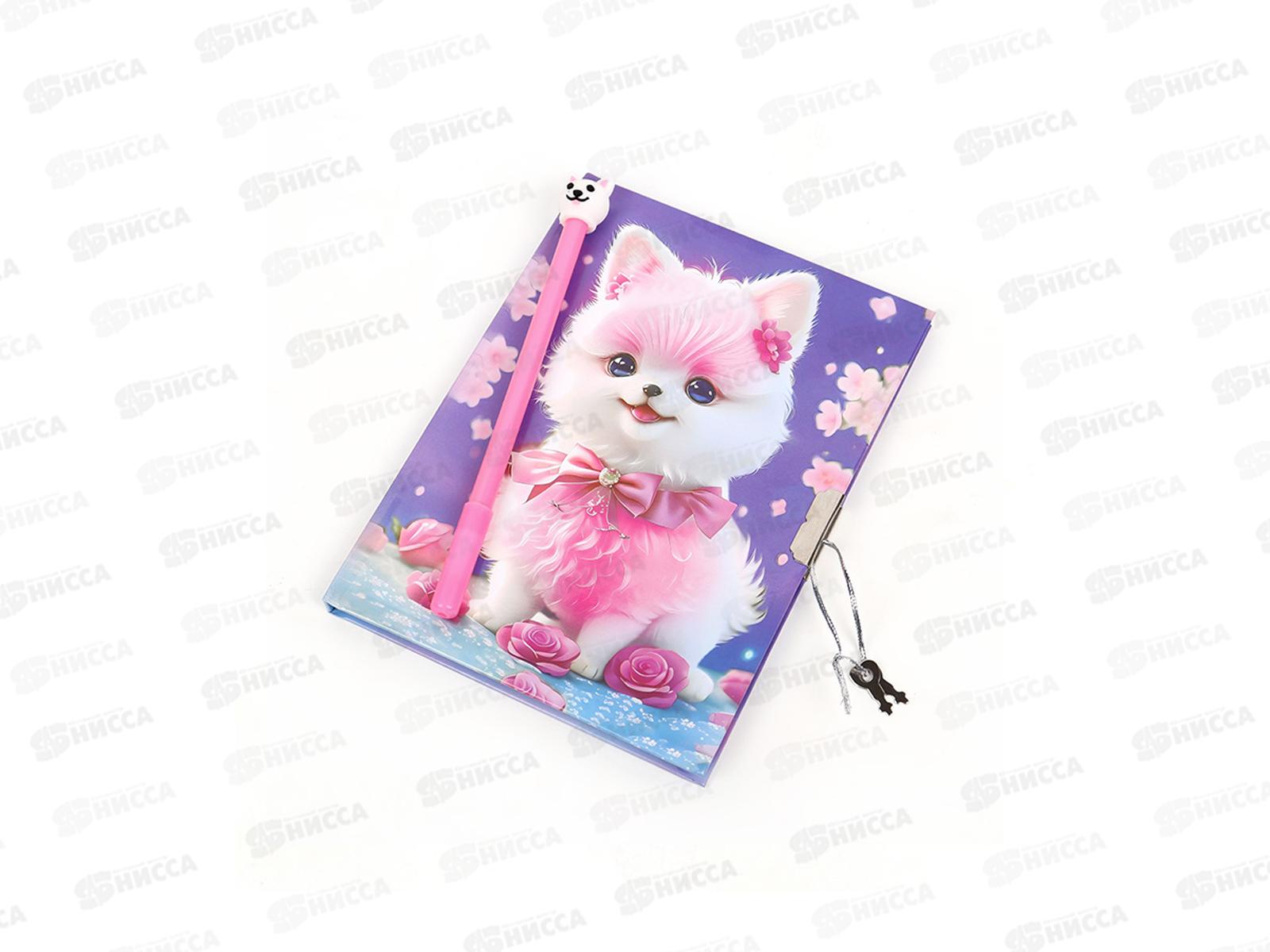Блокнот Darvish 50л. "Собачка с бантом" с замком,с ручкой, DV-15942-3