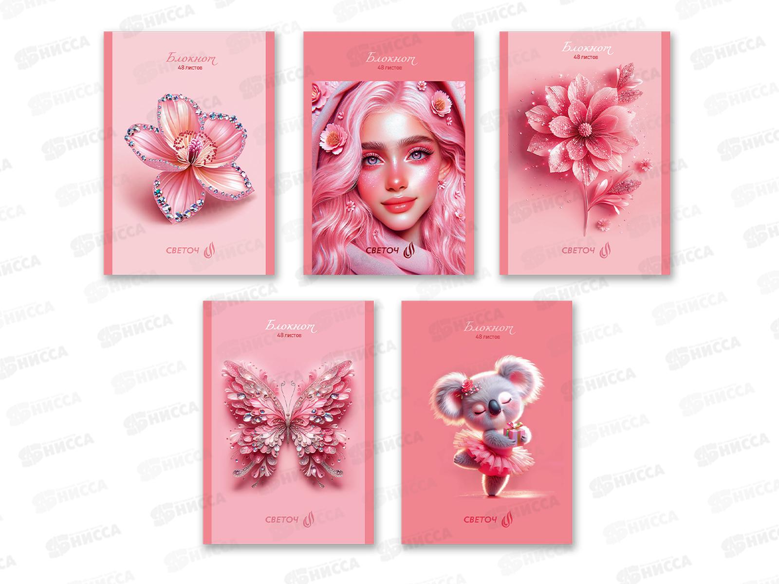 Блокнот 48л SVETOCH А6 Розовый блеск, клетка, 01732
