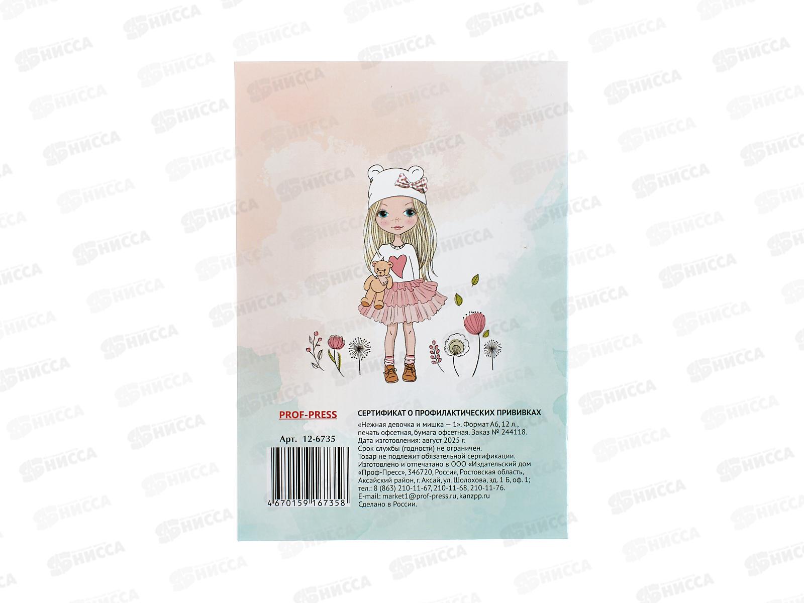 Сертификат о профил. прививках ПП А6, 12л Нежная девочка и мишка 1, 12-6735