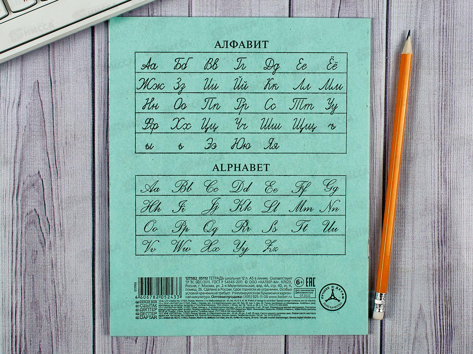 Тетрадь 12 листов линия Hatber зеленая, 05112 *20/360