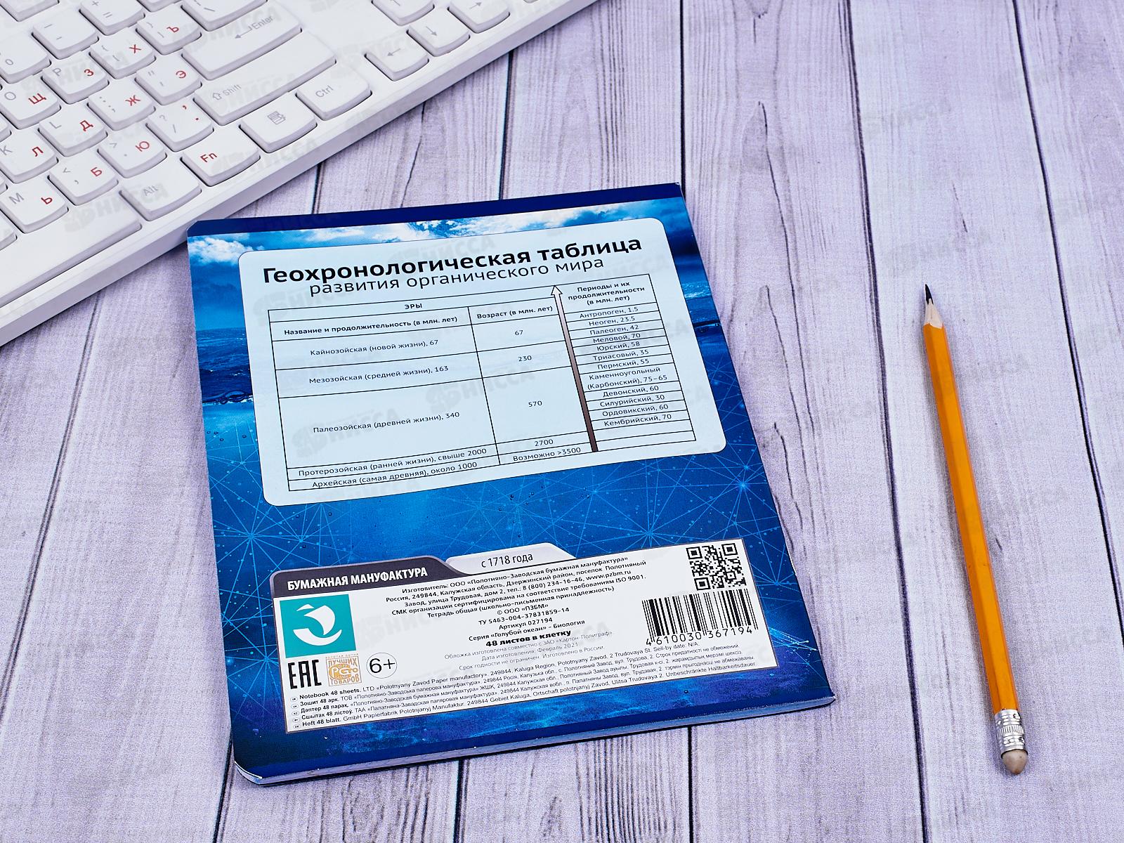 Тетрадь 48 листов клетка. ПЗБМ Голубой океан Биология 027194*5/50