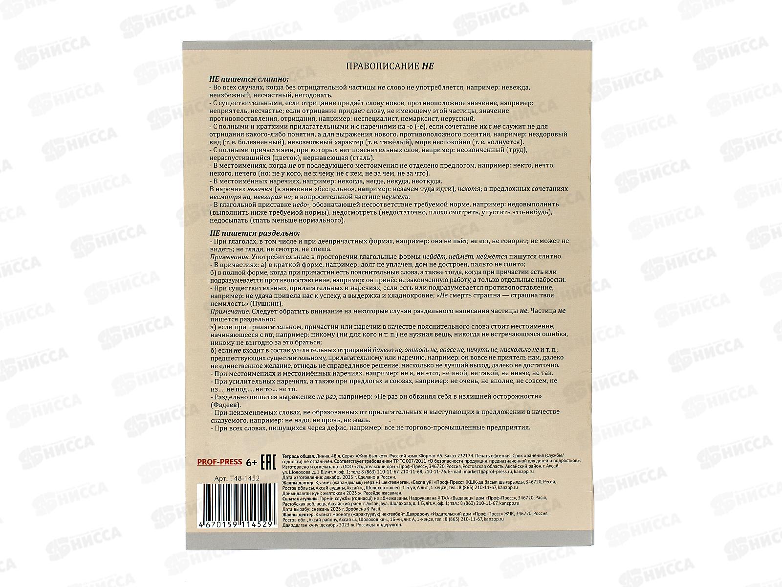 Тетрадь 48л линия ПП "Жил был кот" Русский язык, Т48-1452 *10/80