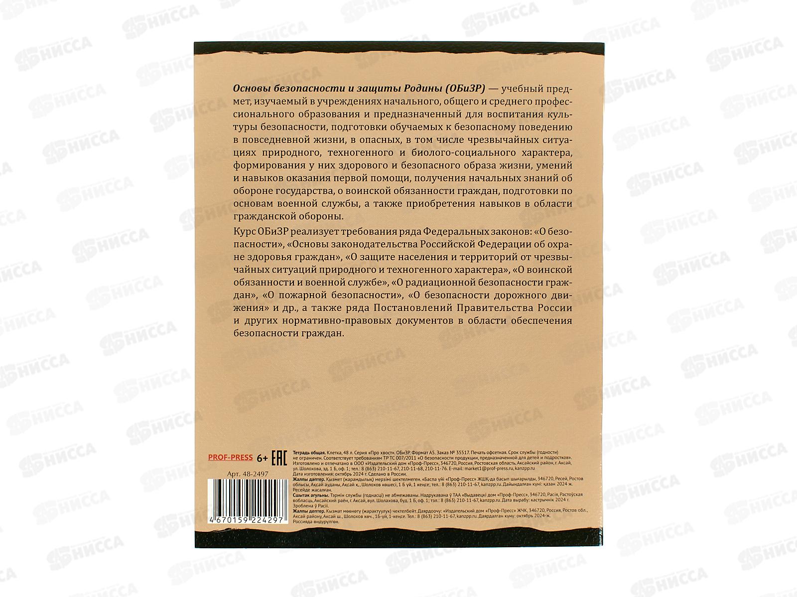 Тетрадь 48л клетка ПП "ПРО ХВОСТ" ОБиЗР, 48-2497 *10/80