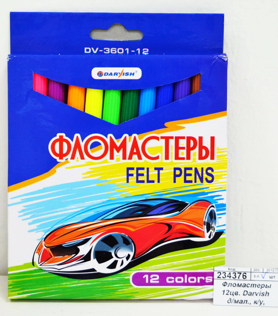 Фломастеры 12 цветов Darvish для мальчиков, картонная упаковка, DV-3601-12*12/120