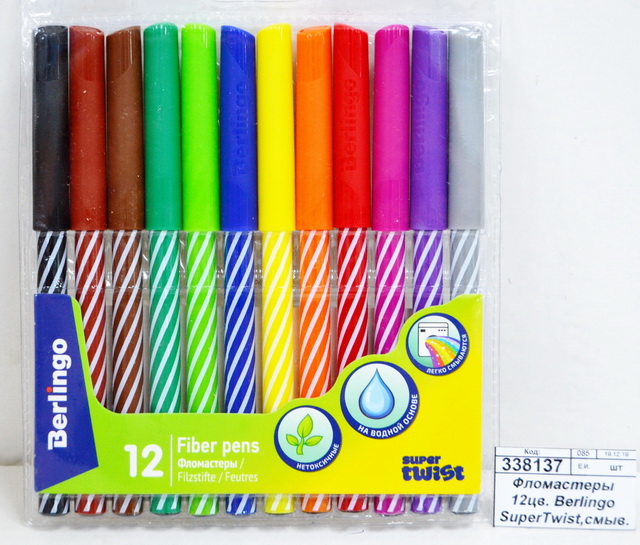 Фломастеры 12 цветов Berlingo SuperTwist, смывающиеся WP_03012*12