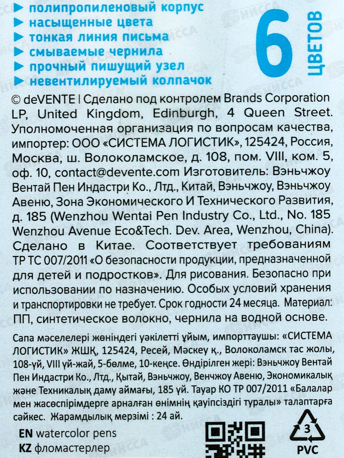Фломастеры 6цв. deVente Fast Or Last невент.колп.п/к 5080522 *24/288