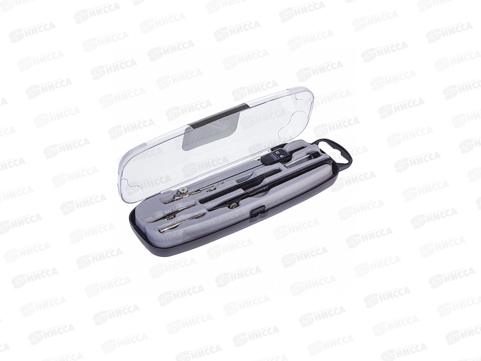 Комплектация: циркуль, рейсфедер, точечная насадка, рейсфедерная вставка, держатель