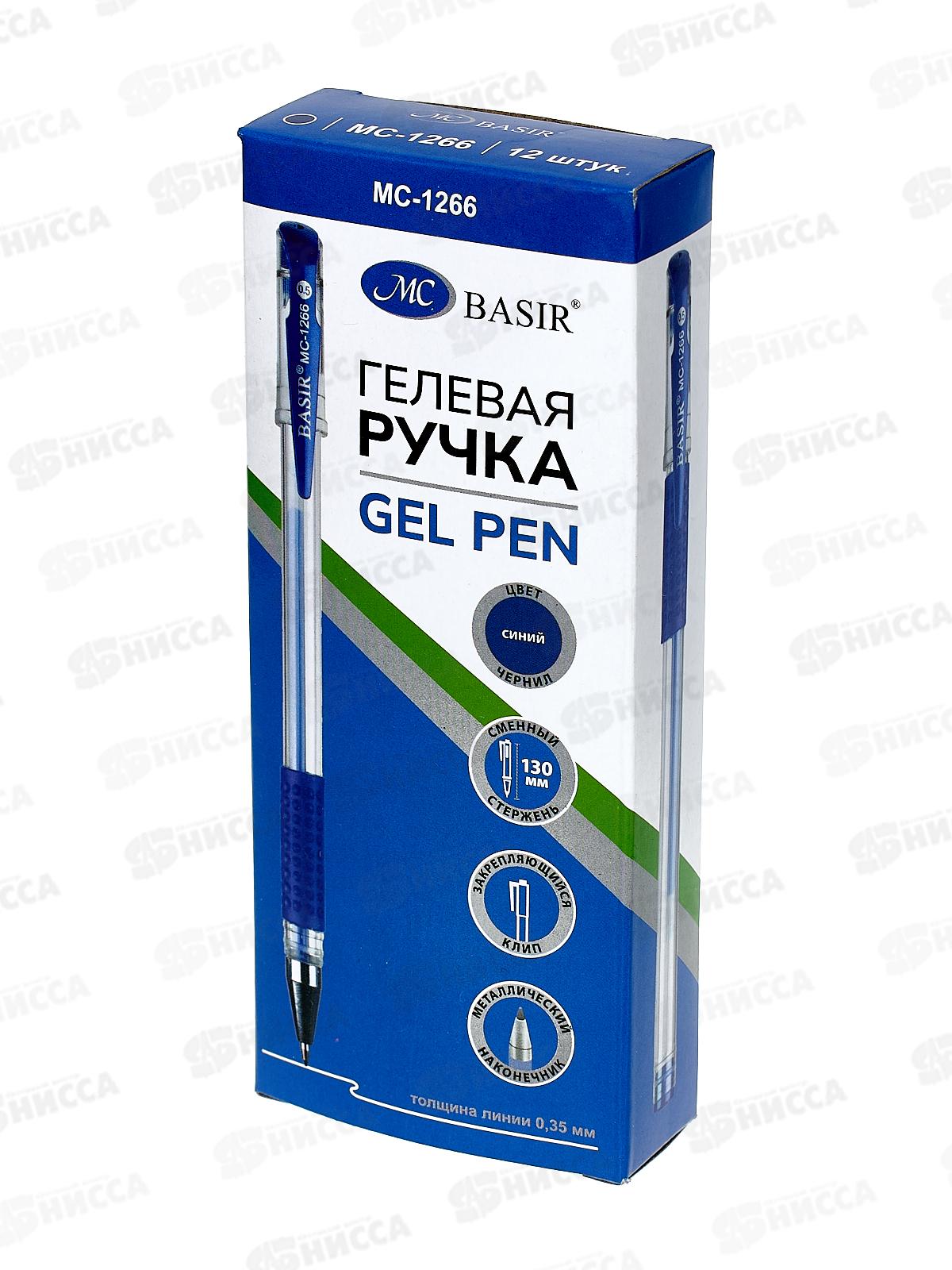 Ручка гелевая. BASIR MC-1266 резинвый держатель, синяя *12/144/1728