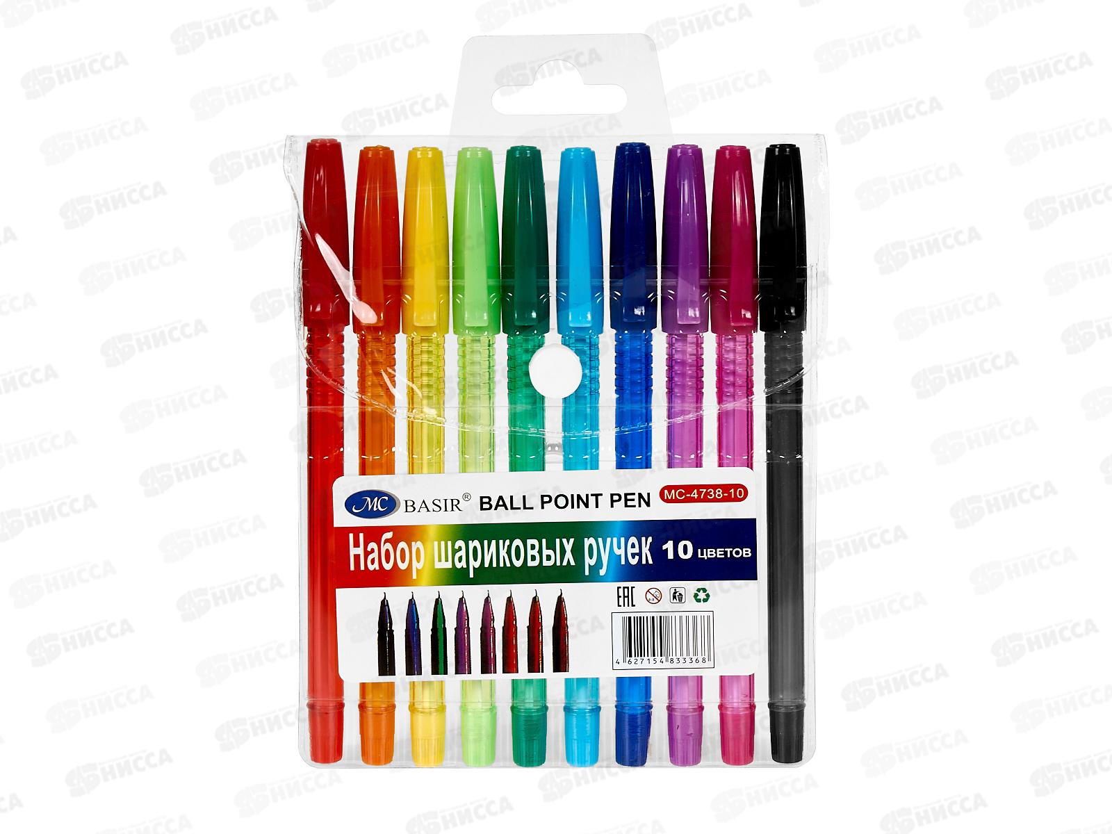 Ручки шариковые BASIR 10цветов МС-4738-10 *24