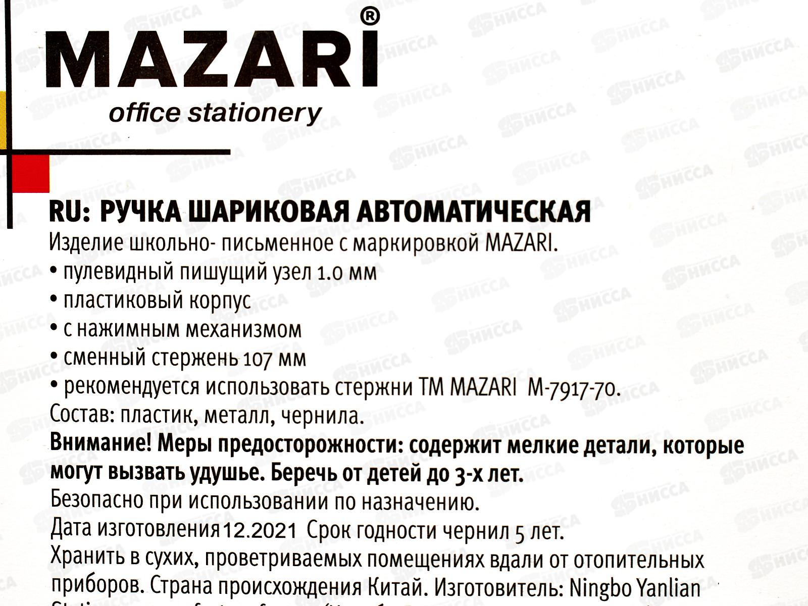 Ручка автоматическая MAZARI Vigorous 1,0мм,M-7634B-70 *50