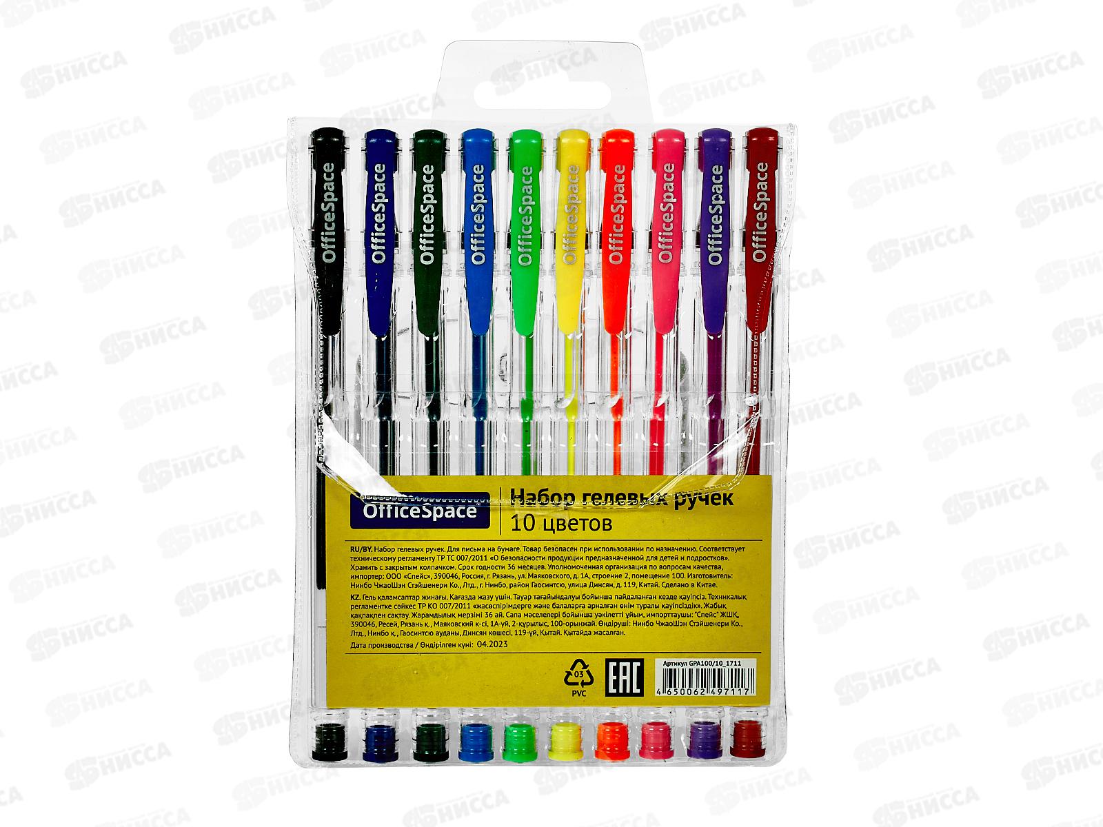 Ручки гелевые OfficeSpace 10 цветов, 100/10 1711*10/180