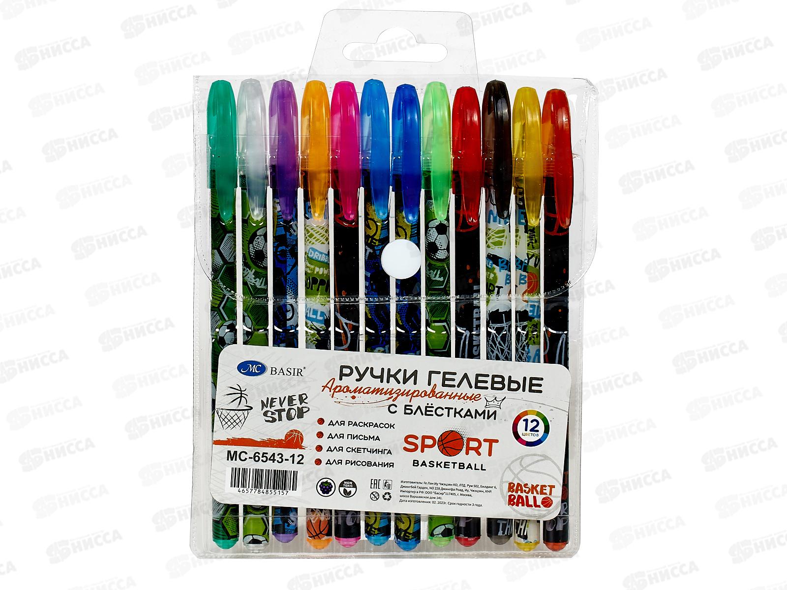 Ручки гелевые BASIR Спорт 12цветов, аромат,с блестками МС-6543-12 *30/240