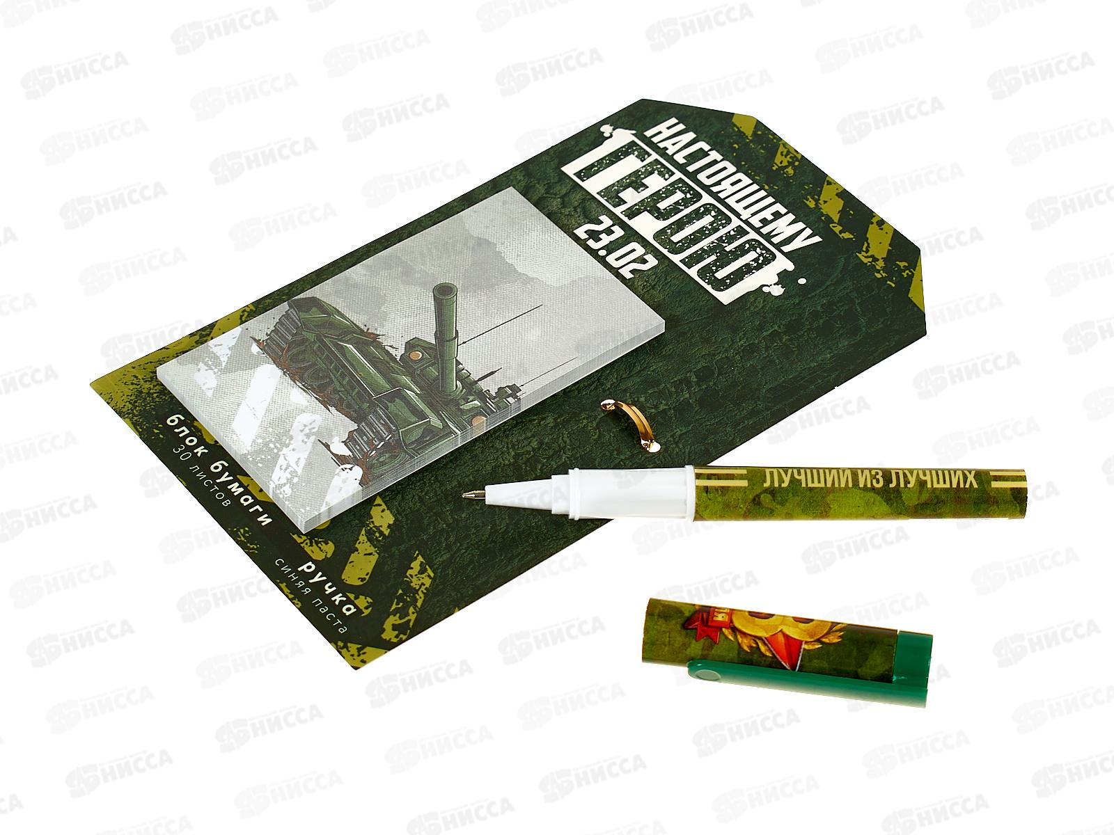 Набор под "Настоящему герою" (ручка+блок 30л) 9877849