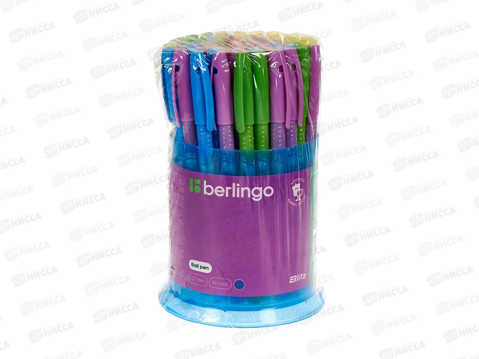 Ручка шар. BERLINGO Blitz, корпус ассорти,.синяя,СВр_70832*50