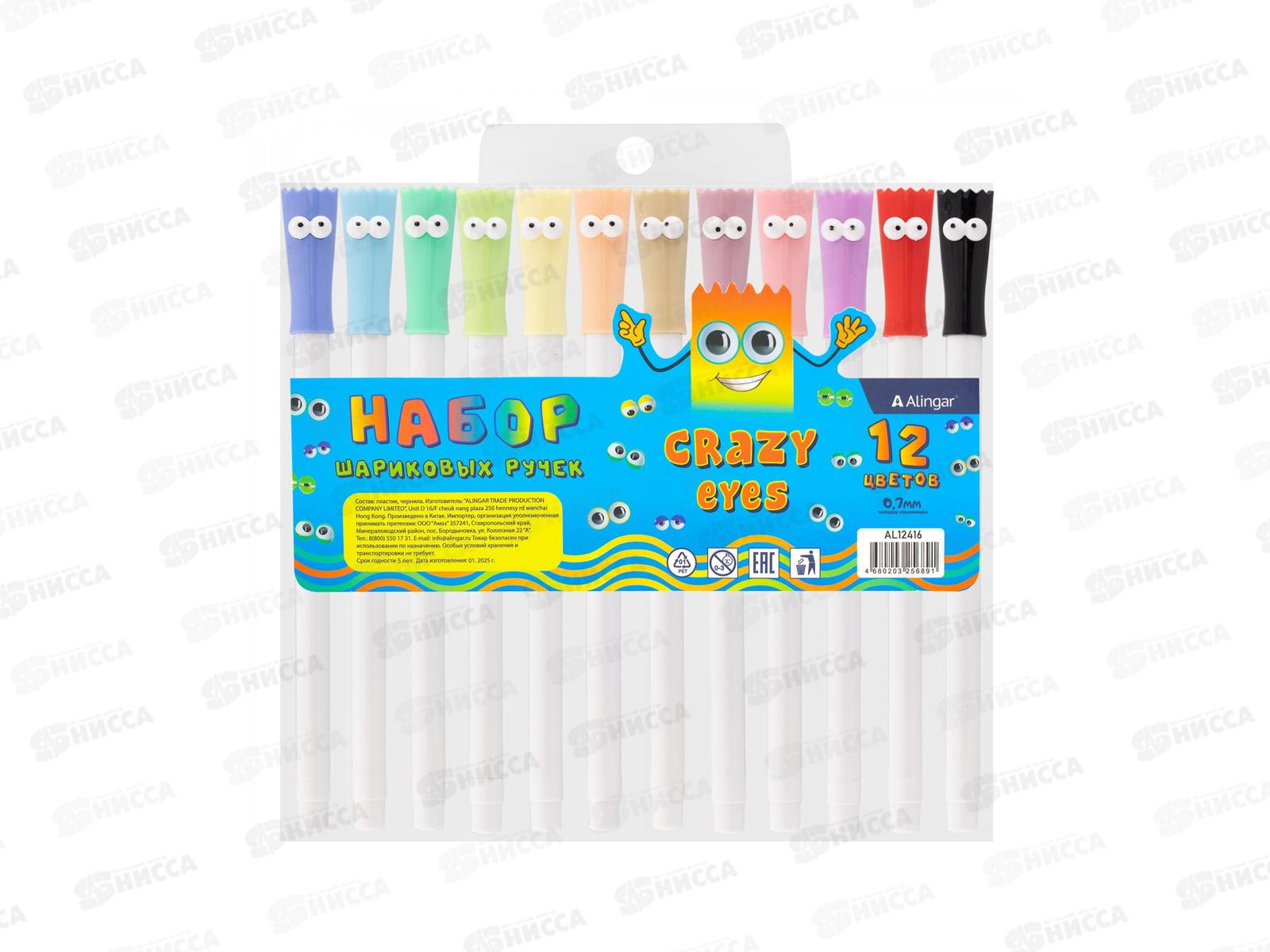 Ручки масл. Alingar 12цв.Bug-eyed AL12416